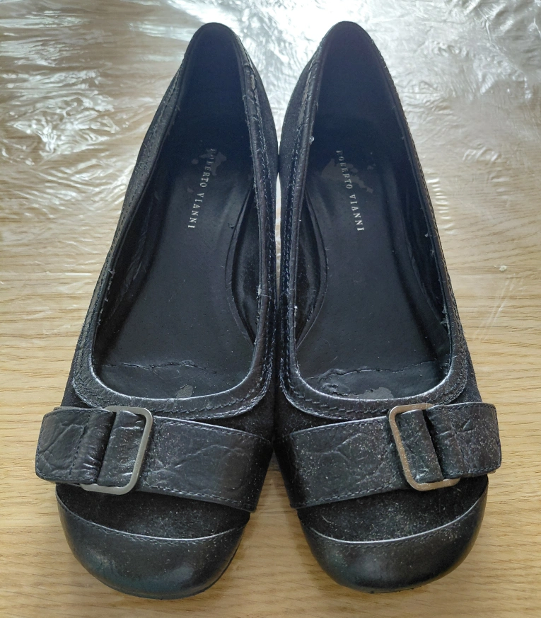 FREE! black flats in size 8. They feature a stylish buckle detail and a comfortable, low wedge heel, perfect for everyday wear or dressing up a casual outfit