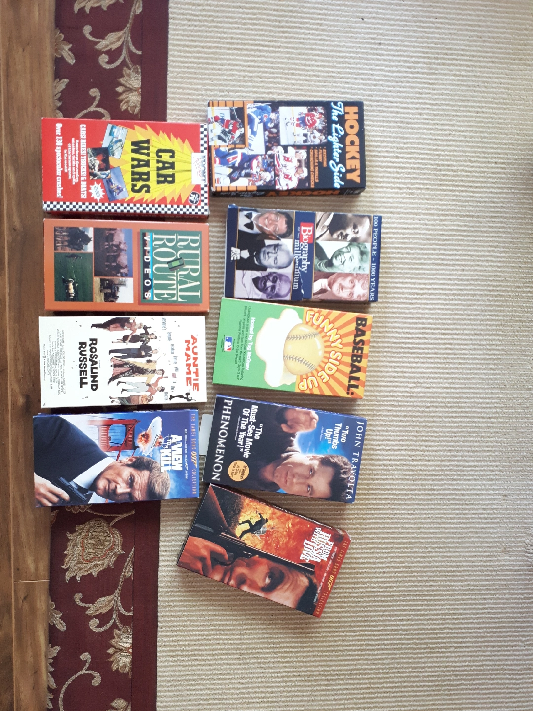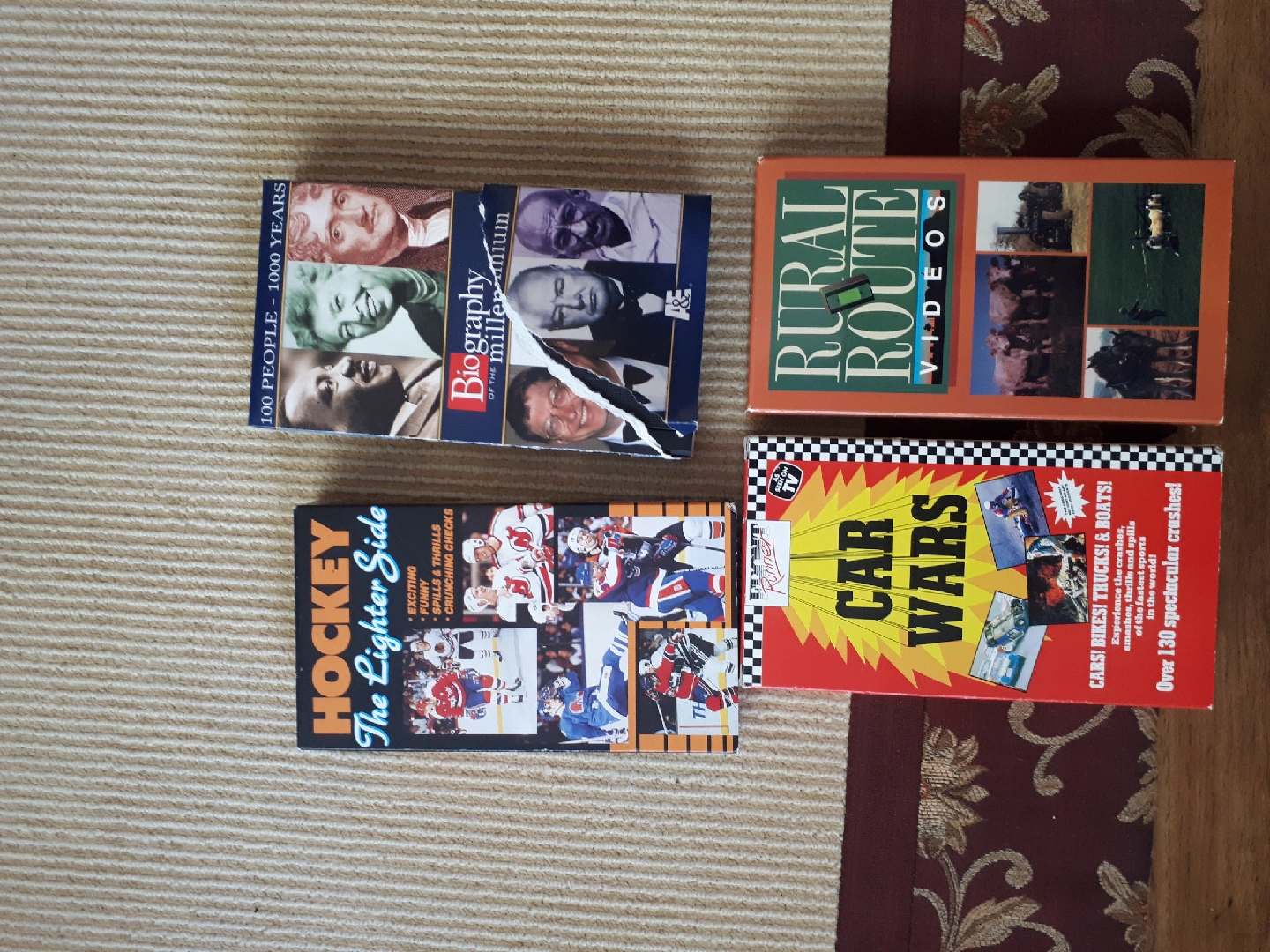 Selling a collection of VHS tapes! Titles include Car Wars, Hockey The Lighter Side, Rural Route Videos, Biography of the Millennium, Funny Side Up Baseball, Auntie Mame, Phenomenon, Avi and Anti, From Russia With Love, and A View to a Kill. Perfect for collectors or anyone looking for a bit of nostalgia