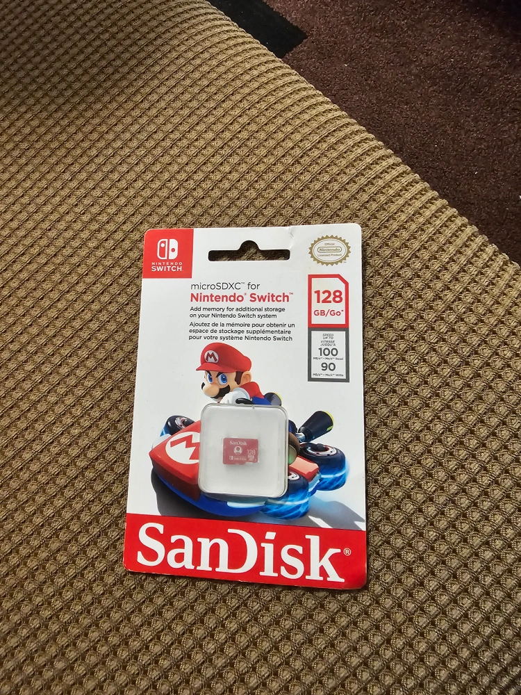 Selling a brand new SanDisk 128GB microSDXC card designed specifically for the Nintendo Switch! Add extra storage to your Switch with this officially licensed memory card. Never been opened!