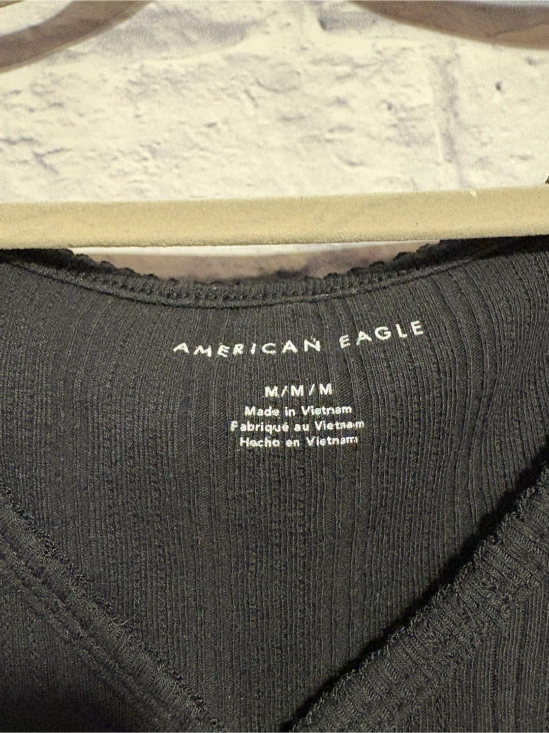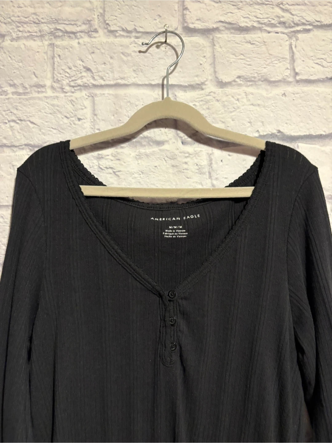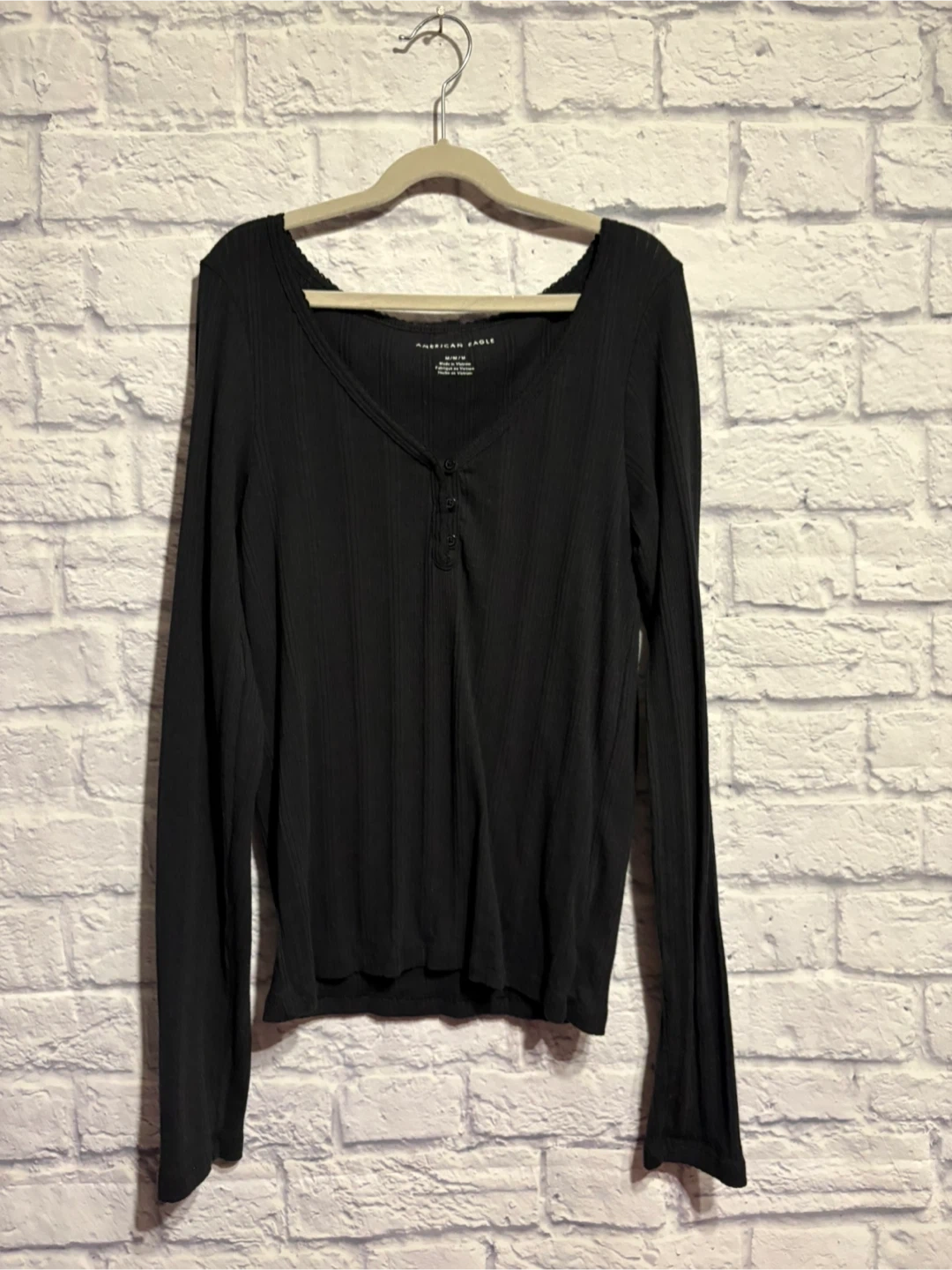 American Eagle black long sleeve top in size medium! The material is 60% cotton and 40% polyester. It features a V-neck with button details. Perfect for layering or wearing on its own! Very good condition. Pick up only.