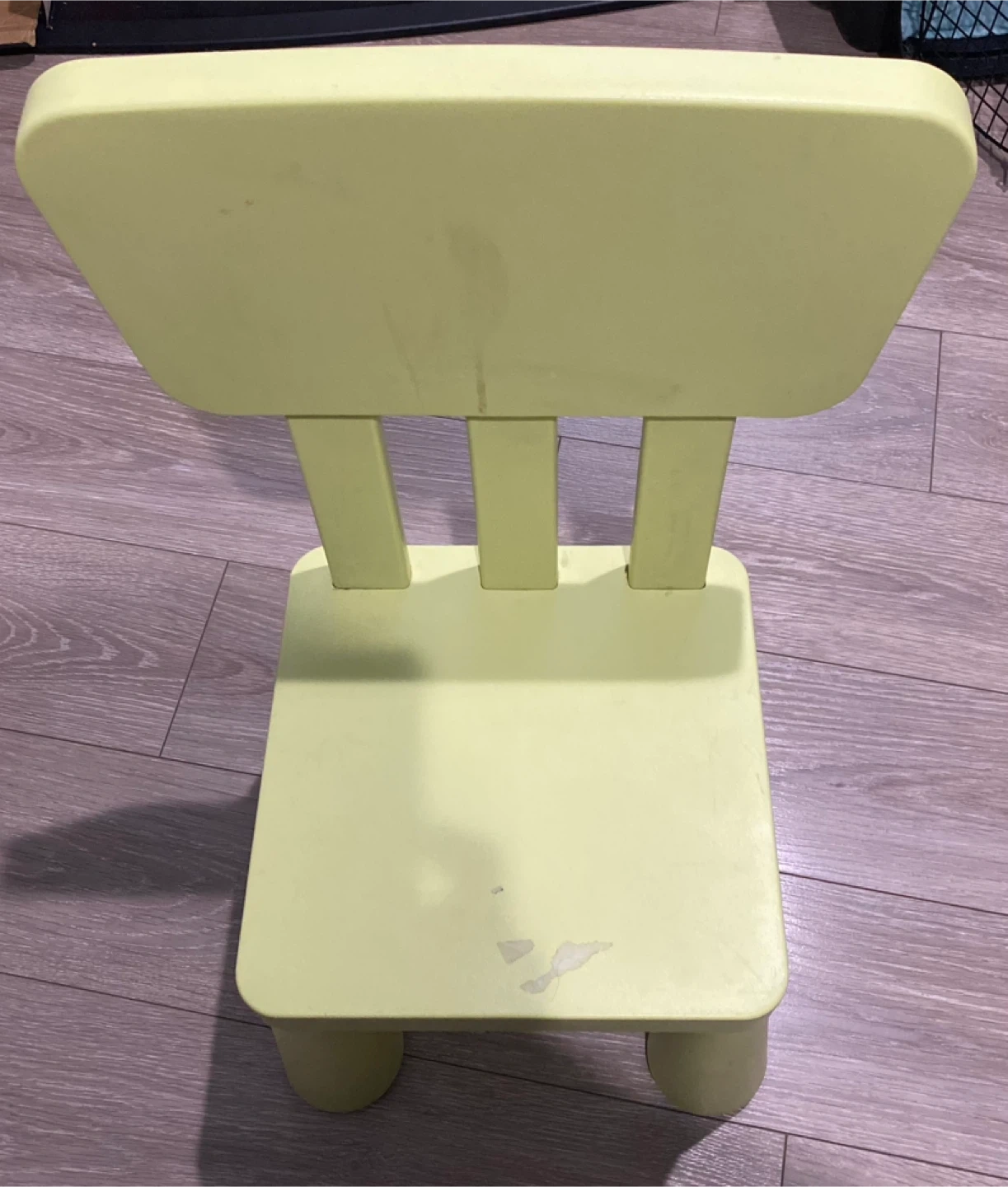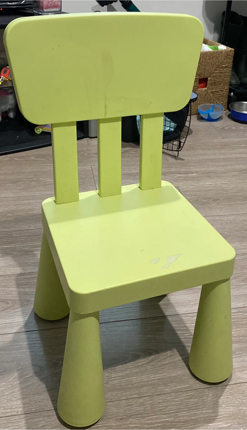 Selling a light green IKEA Mammut children's chair! It's perfect for little ones and is made of durable plastic. There are some signs of use, as pictured, but it's still in good condition for playtime or crafts!