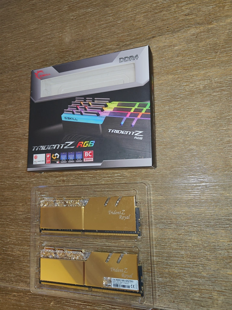 Selling a G.Skill Trident Z Royal DDR4 memory kit! This kit includes two 16GB modules for a total of 32GB. The speed is 3200MHz, perfect for gaming or content creation. It comes with the original box!