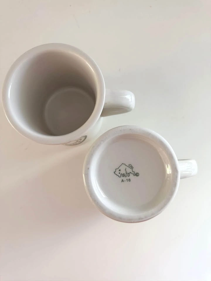 These are classic diner / restaurant ware mugs, featuring the iconic "Beans Inside" logo. The heavy ceramic is designed to keep your coffee piping hot!