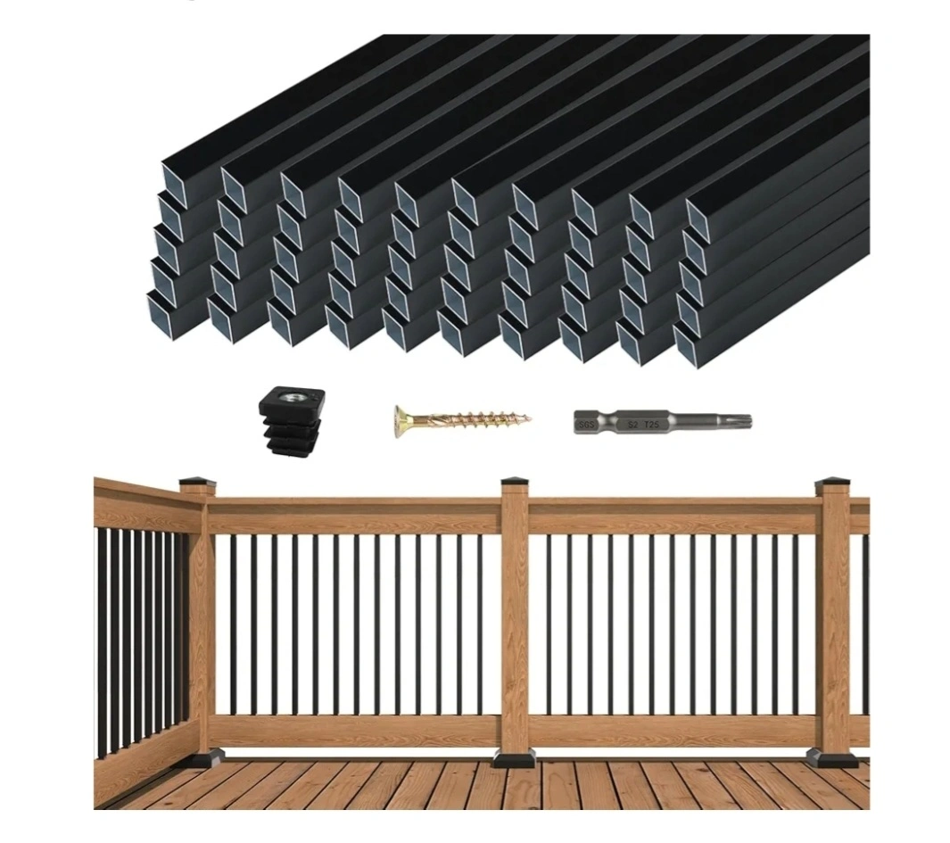 Muzata 50 Pack 36" Aluminum Deck Railing Balusters Square.