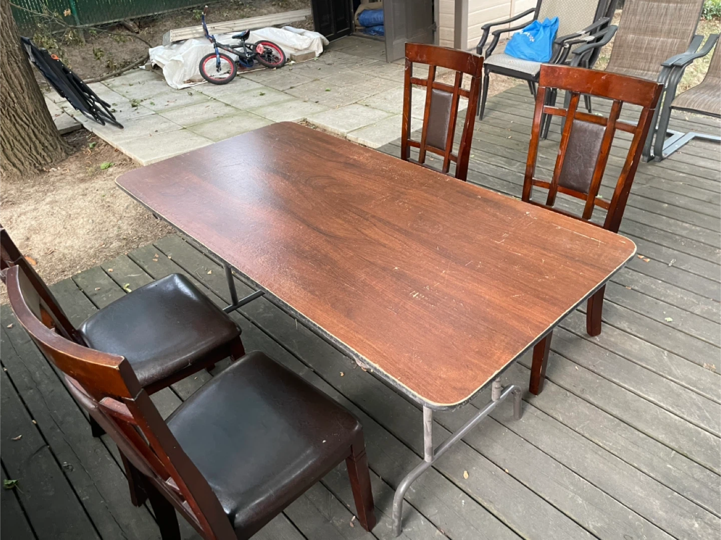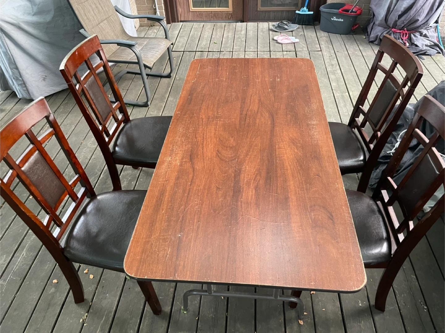 It’s foldable table and 4 chairs As it’s used furniture, table have some scratches on top - please refer pictures for conditions, again it’s used furnitures. Cash and pickup Location- brimley and Lawrence Delivery available if possible only with additional fee Thank you