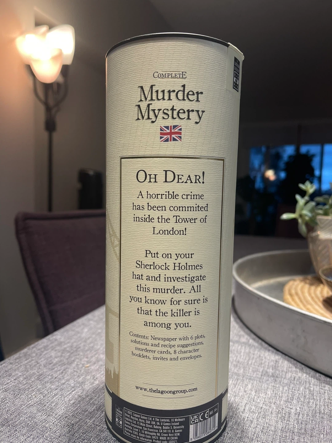 88Looking to solve a crime? This Lagoon Complete Murder Mystery game, set at the Tower of London, is perfect for a night of intrigue! It includes everything you need to put on your Sherlock Holmes hat and investigate. The game contains a newspaper with 6 plots, solution and recipe suggestions, 8 murder cards, 8 character booklets, invites, and envelopes