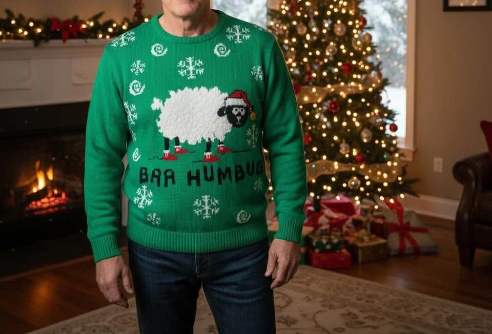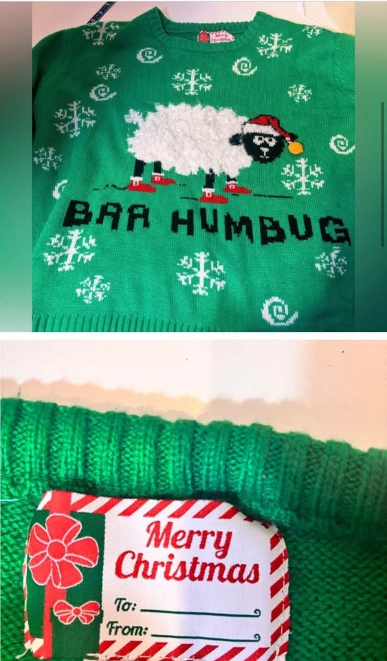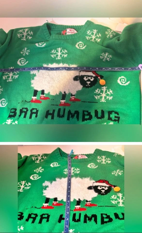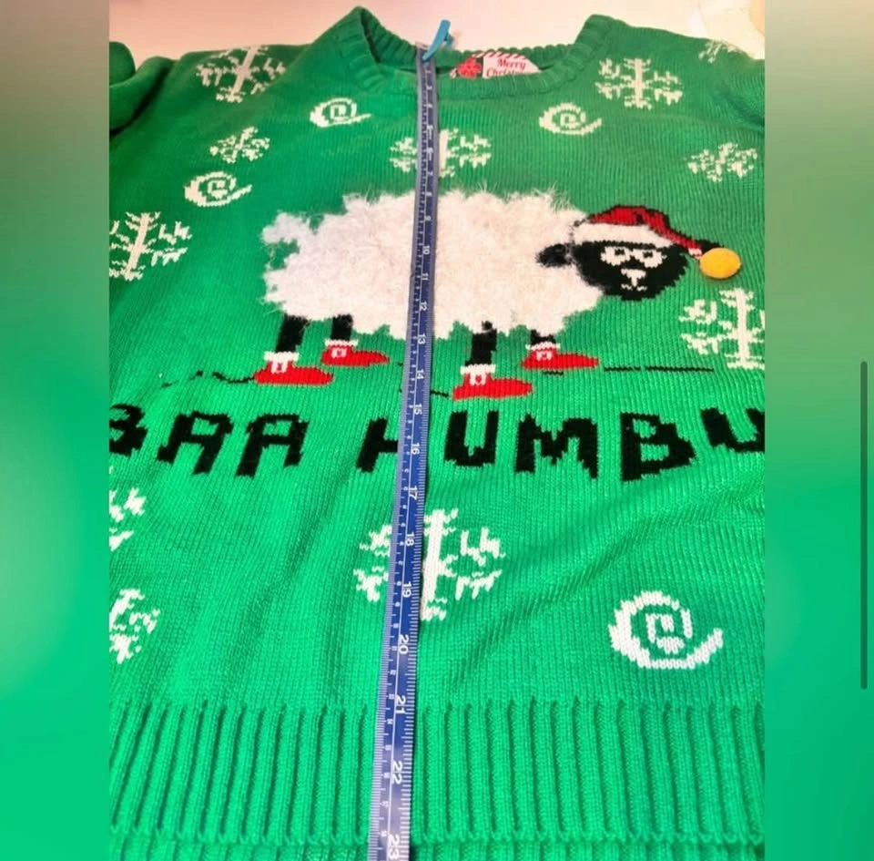 Green ugly Christmas Sweater with soft Sheep Design baa humbug Unisex