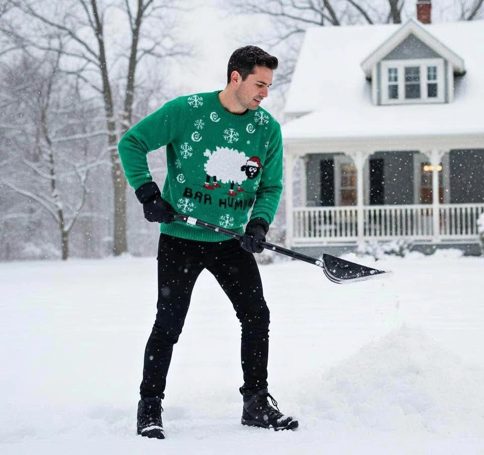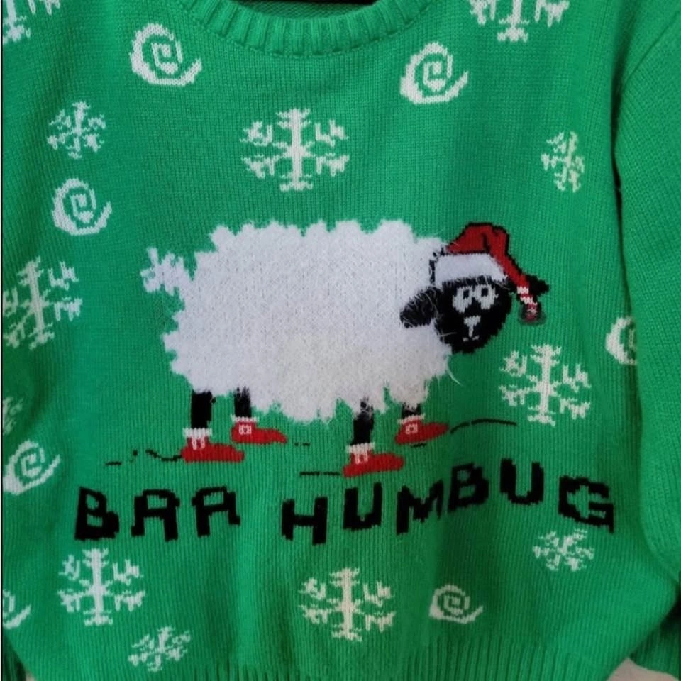 Green ugly Christmas Sweater with soft Sheep Design baa humbug Unisex