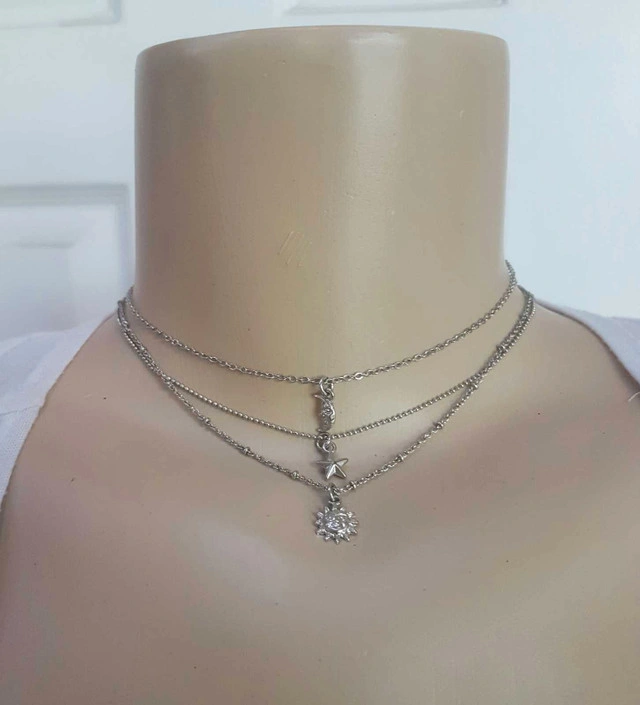 Chains are 15 inch, 15 inch & 13.5 inch (lengths are adjustable)