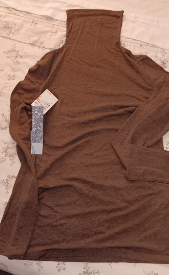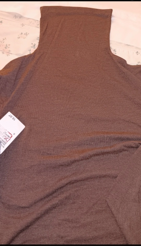 This is a brand new long sleeve top! It's a size small and comes in a lovely brown color. The material is 95% modal and 5% spandex, making it super soft and comfortable and ultra lightweight. Stovepipe turtleneck, xtra long sleeves. NWT