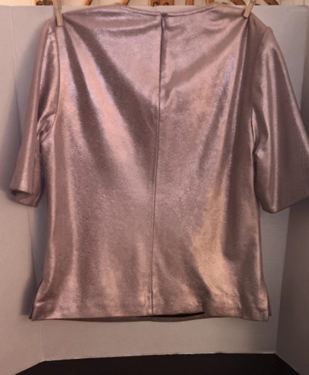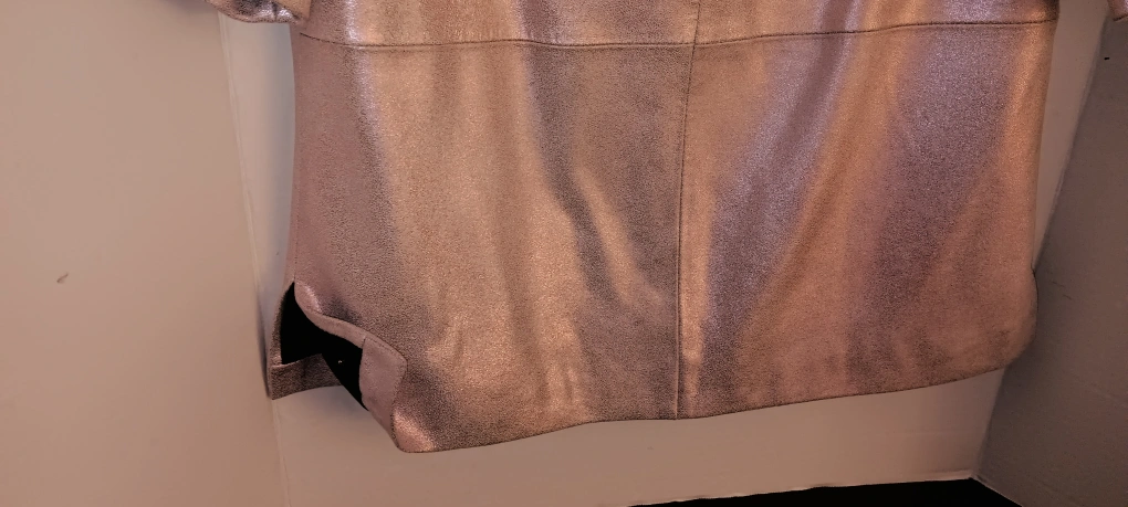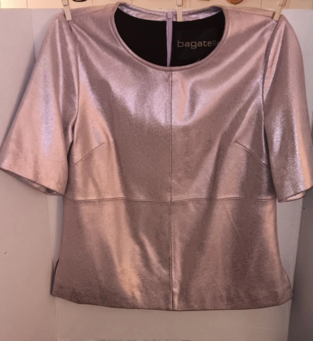 Selling a stylish metallic Leather top from Bagatelle in size small! Pinkish hue. It's in great condition, fully lined with back zipper side slits at waist, supple and soft. Perfect for adding a bit of shine to your wardrobe. New With tags. Beautiful!!!