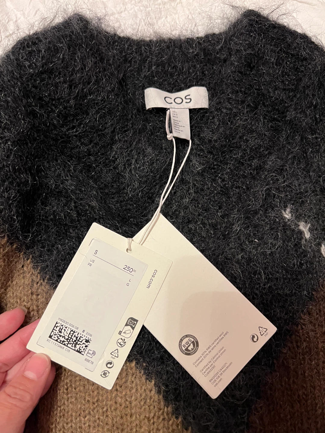 Cozy up in this stylish COS argyle sweater! It's a size small and features a lovely wool blend. Perfect for adding a touch of warmth and sophistication to your wardrobe