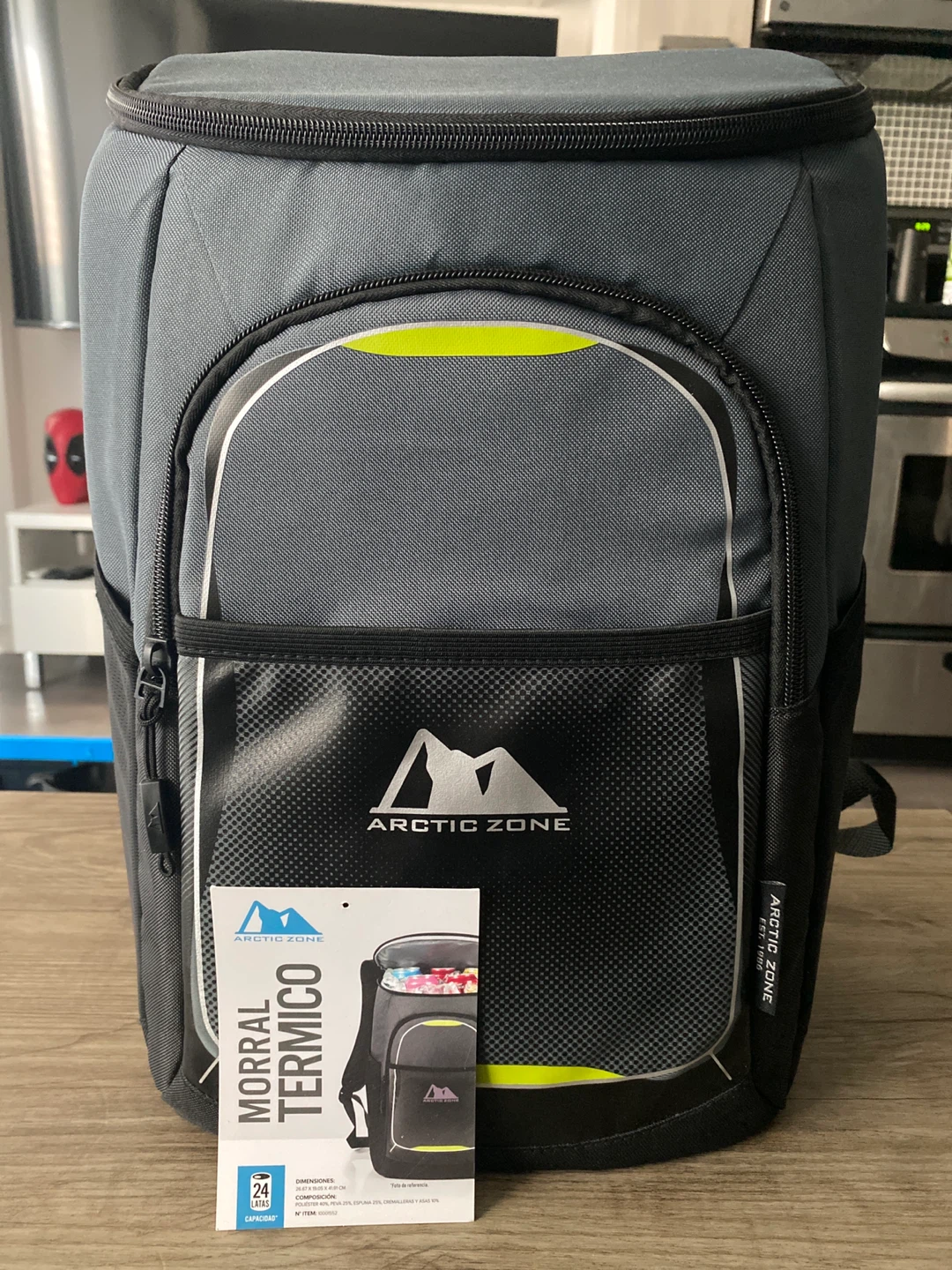 Selling an Arctic Zone backpack cooler in excellent condition! It's perfect for keeping your drinks and snacks cold on the go. The cooler has a capacity of 24 cans and features a durable construction of polyester, PEVA, and foam. Dimensions are approximately 26.67 x 19.05 x 41.91 cm