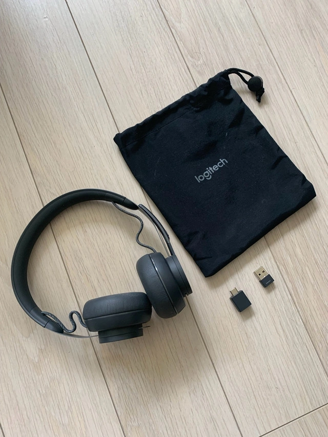 Excellent condition Logitech Zone Wireless with adapters and noise canceling and microphone perfect for meetings on Zoom or Teams (Teams certified). Convenient USB C charging. Retail for 250+taxes. For Sale By: Owner