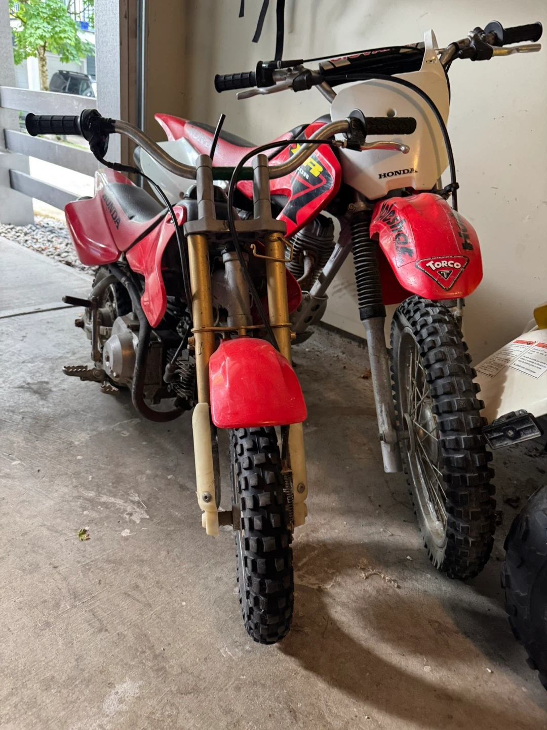 Selling two Honda dirt bikes! One is a XR80 and the other is a XR50 . Both are running and working, the 80 is a 2003 I believe and the 50 is some where around 97-99