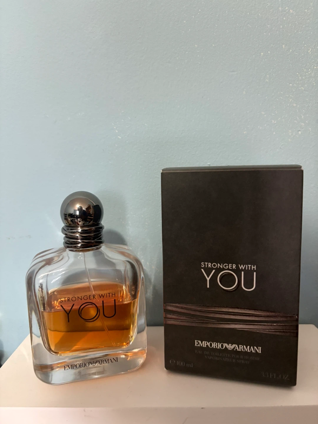 37Selling a bottle of Emporio Armani's Stronger With You Eau de Toilette! It's a 100ml bottle and comes with the original box. A great scent for everyday wear used about half the bottle.