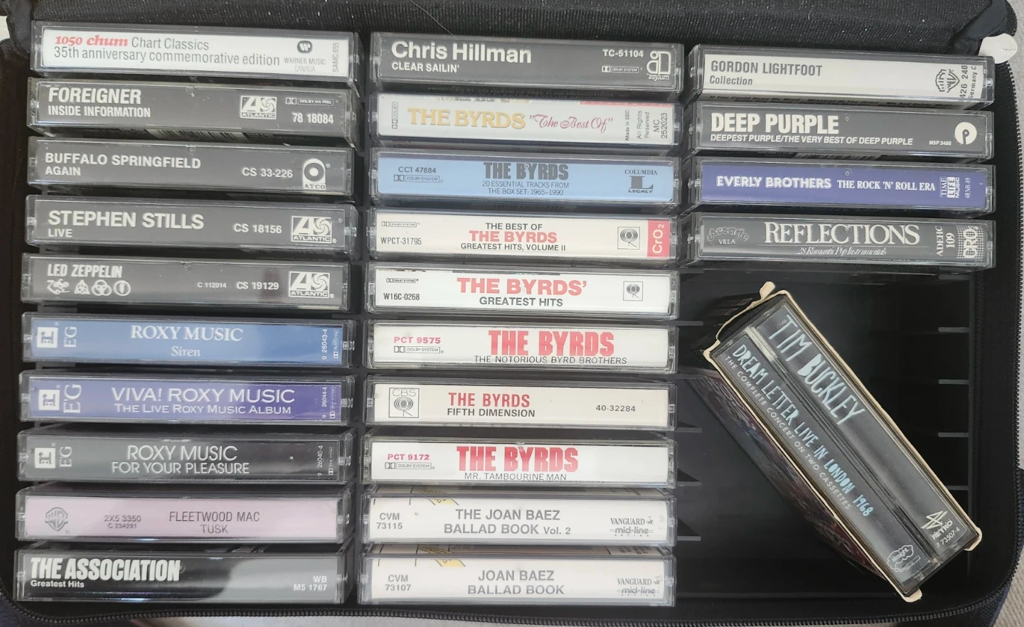 Selling a large collection of cassette tapes featuring a variety of artists and genres! Includes classic rock bands like Led Zeppelin, Deep Purple, and Fleetwood Mac, plus folk legends such as Neil Young, Joan Baez, and Gordon Lightfoot. Also features The Byrds, and many more! Great for collectors or anyone looking to enjoy some vintage tunes.