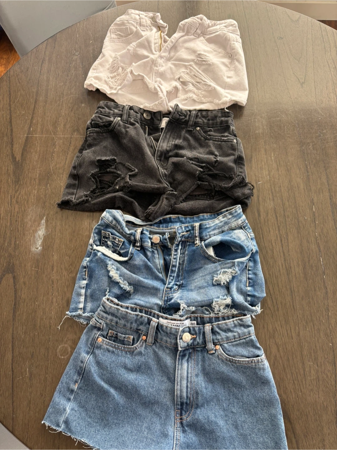 125Selling a set of four pairs of distressed denim shorts. There's a mix of colours and styles, all in great condition! Size 00. Asking $15 for the lot. Located in Cougar Ridge.