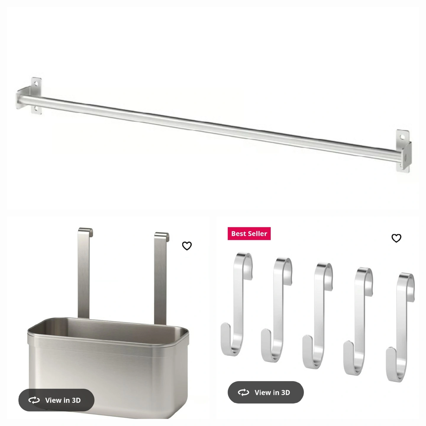 Show allIKEA Rail w/ Container & 8 Hooks - Stainless Steel