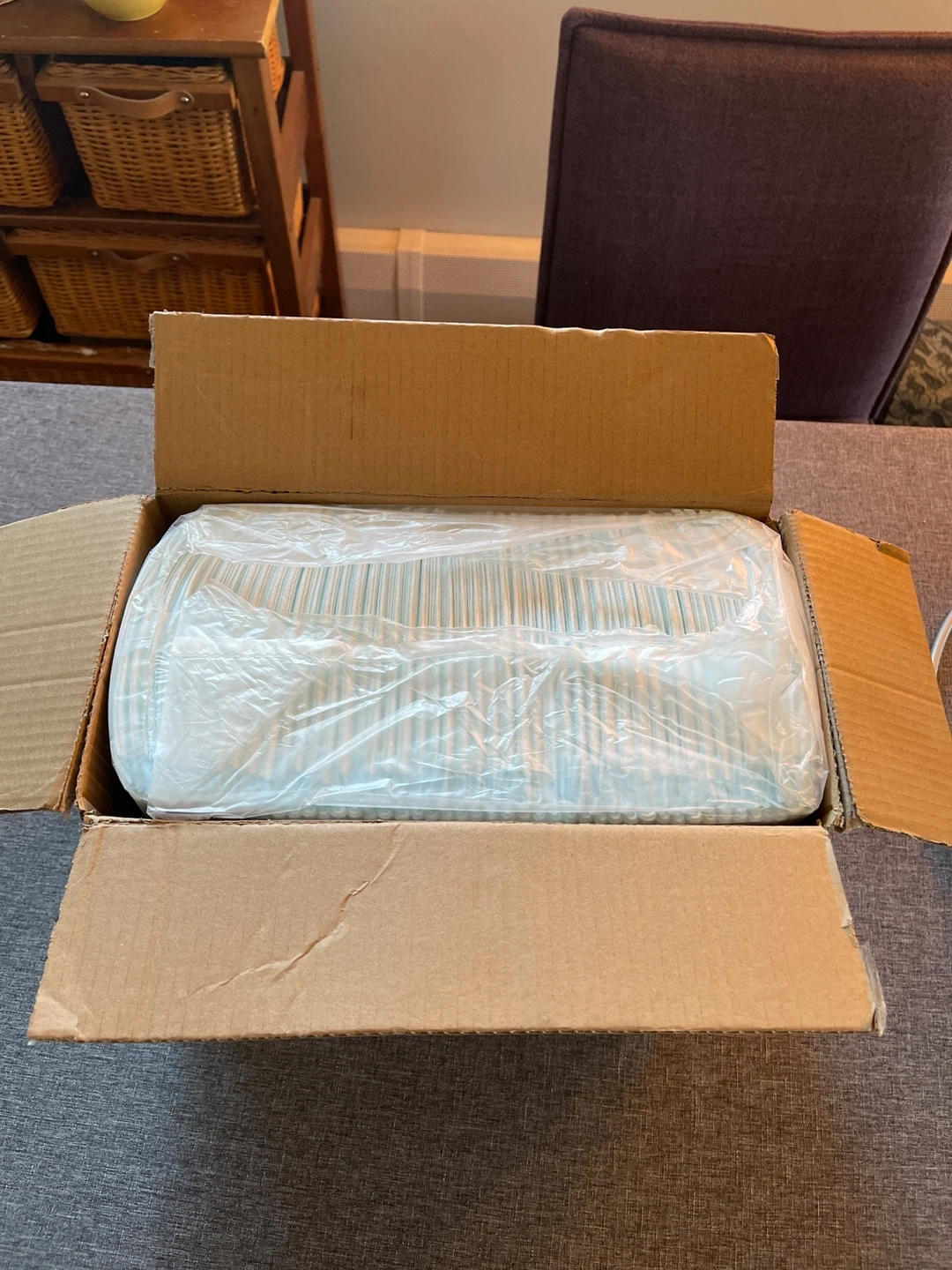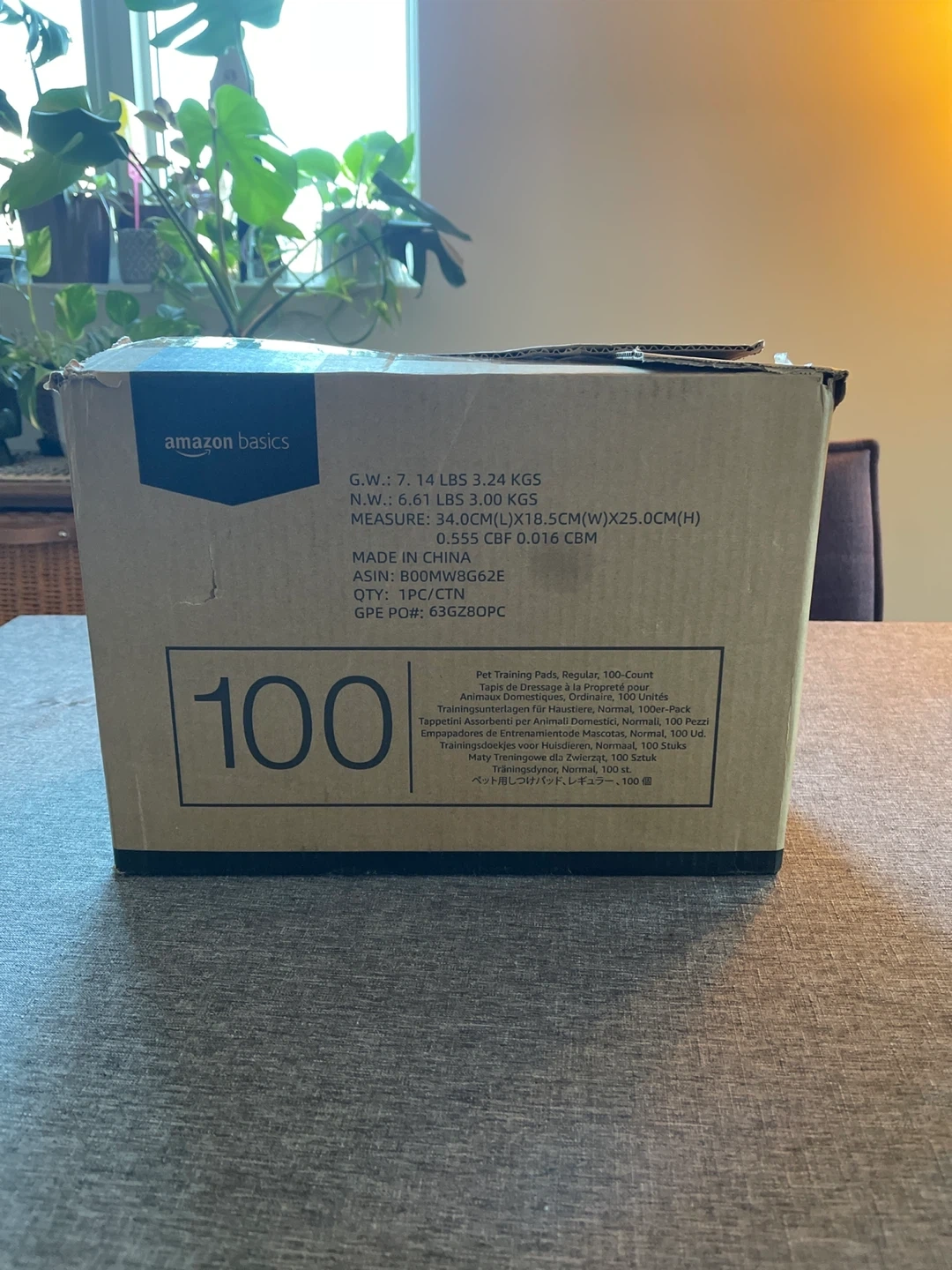 Selling a box of Amazon Basics Pet Training Pads, regular size, 100-count. The box has some wear, but the pads inside untouched. 1 or 2 have been used and discarded.