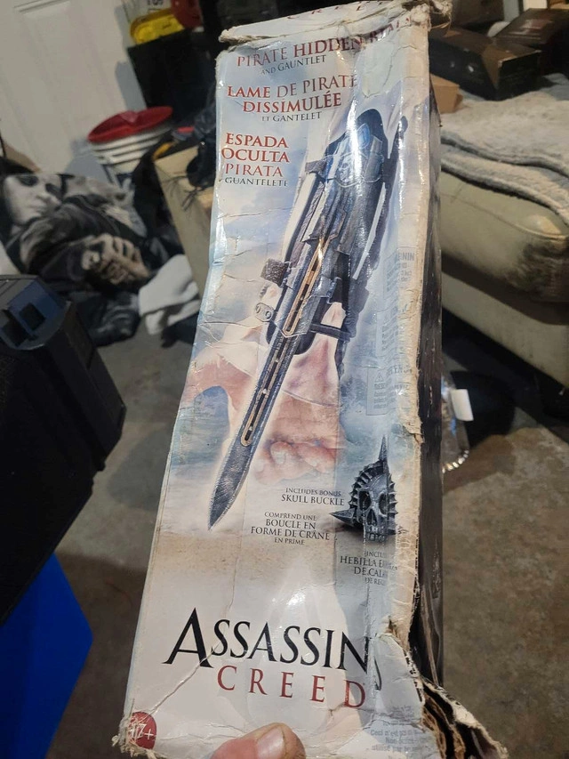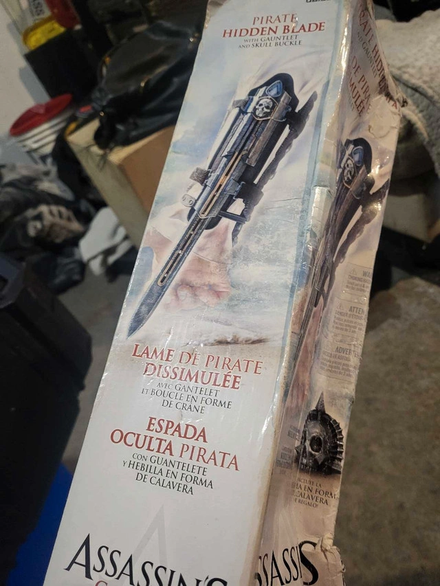 Step into the world of Assassin's Creed with this used Assassin's Creed IV Black Flag Pirate Hidden Blade Gauntlet and Skull Buckle Replica. Note that the box is damaged, and the item is in used condition, as reflected in the price. Relive the thrilling adventures of Edward Kenway with this iconic piece of the game! I am selling the Pirate Hidden Blade Gauntlet and Skull Buckle. This item has been enjoyed and shows signs of wear, which only adds to its authentic pirate appeal. Perfect for collectors and cosplayers alike. Features: • Detailed replica from Assassin's Creed IV Black Flag • Includes the hidden blade gauntlet and skull buckle • Great for display or cosplay If the ad is up, it's still available!