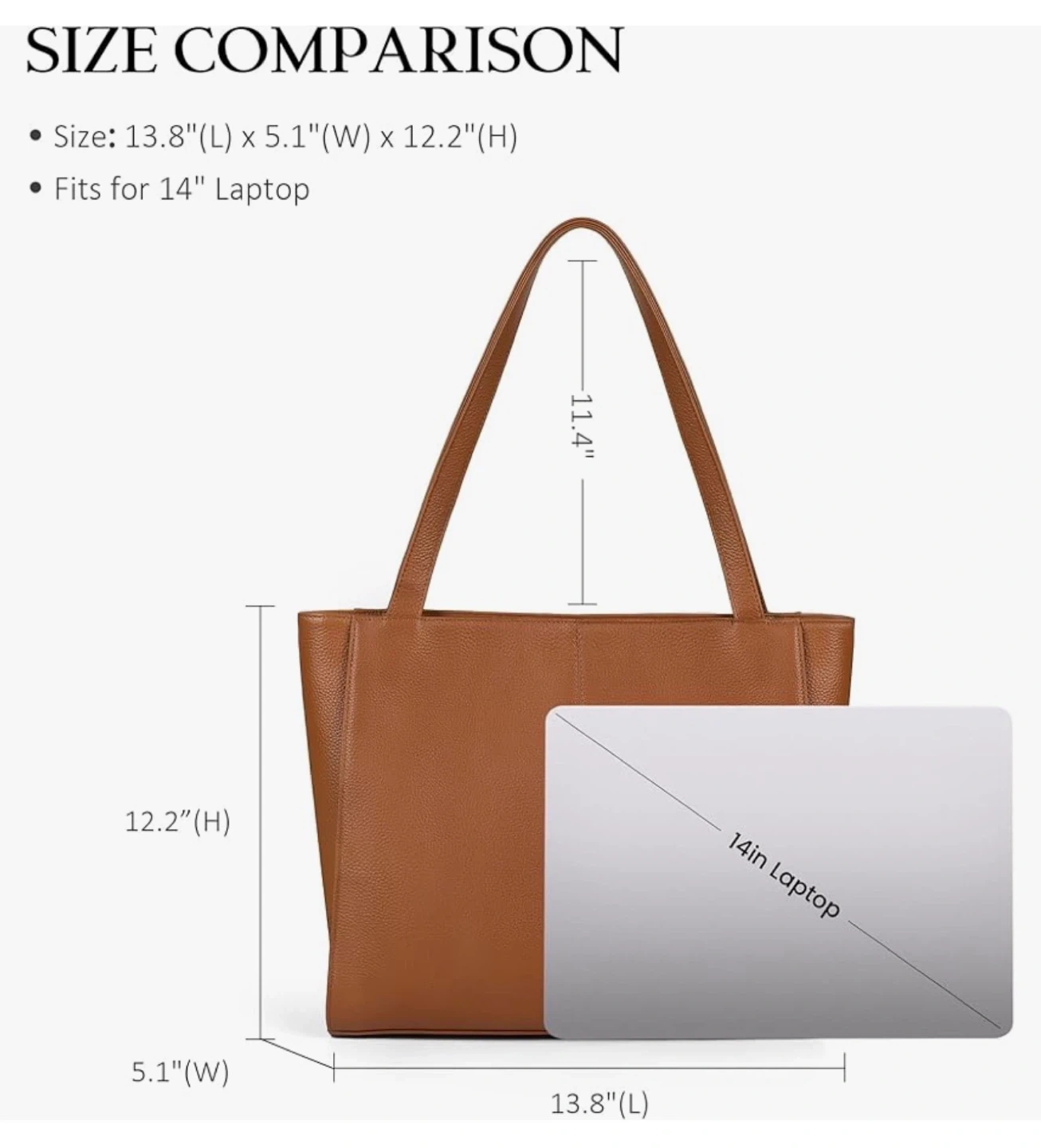 Brown Leather Tote Shoulder Bag - Fits 14" Laptop