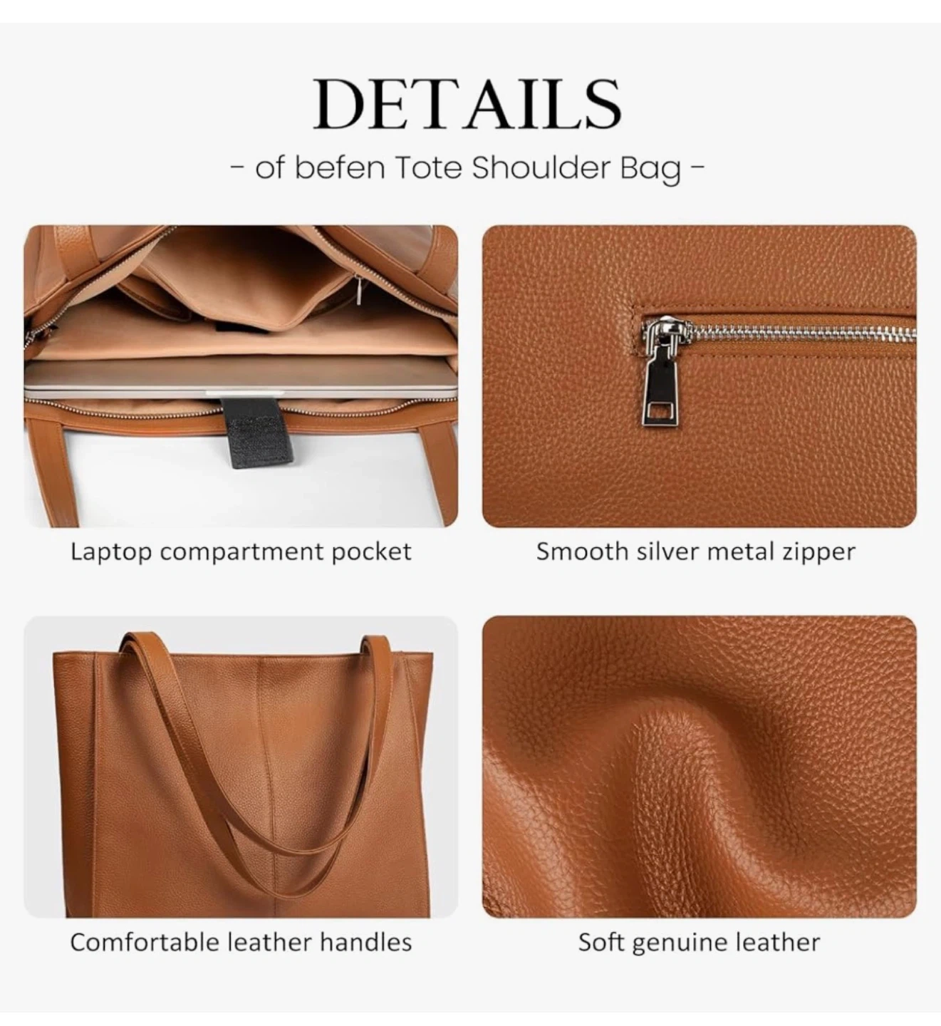 BEFEN Genuine Leather Tote Bag for Women, Women's Leather Shoulder Bags Purses Satchel Handbags with Top Handles