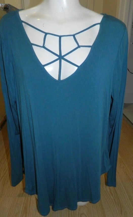 Here's a teal long-sleeved top that's looking for a new home! It features a unique cutout design at the neckline that adds a bit of flair to the classic long sleeve style. Perfect for layering or wearing on its own! AMERICAN EAGLE SOFT & SEXY LONG SLEEVE ...SIZE L...EUC