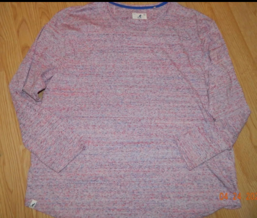 Kangol long sleeve shirt in good condition. The shirt has a unique heathered pattern with a blue collar trim. Perfect for casual wear! MENS KANGOL LONG SLEEVE...SIZE XXL...EUC