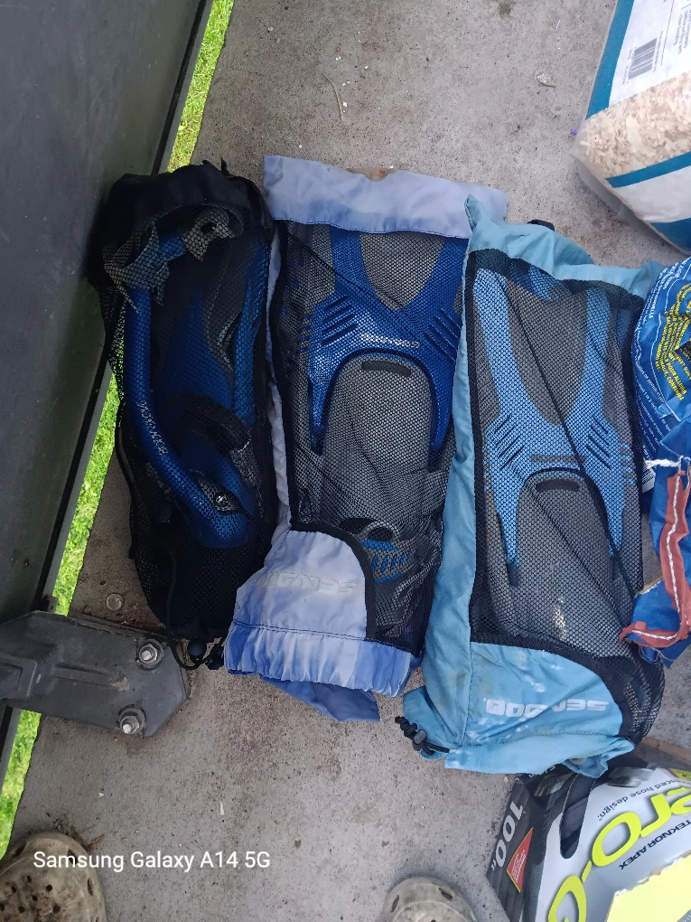 giving away to a family who can use these. set of Seadoo fins, perfect for your next water adventure! They come in a convenient carrying bag for easy transport and storage . The fins are blue and black with a mesh design. Ready for a new home! they have been used and still have lots of life left in them #freecycle 🥕 647-203-0411 pickup only