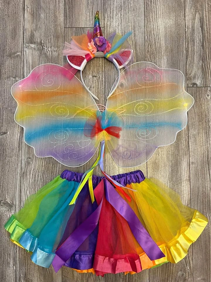 Includes tutu, wings and unicorn horn headband