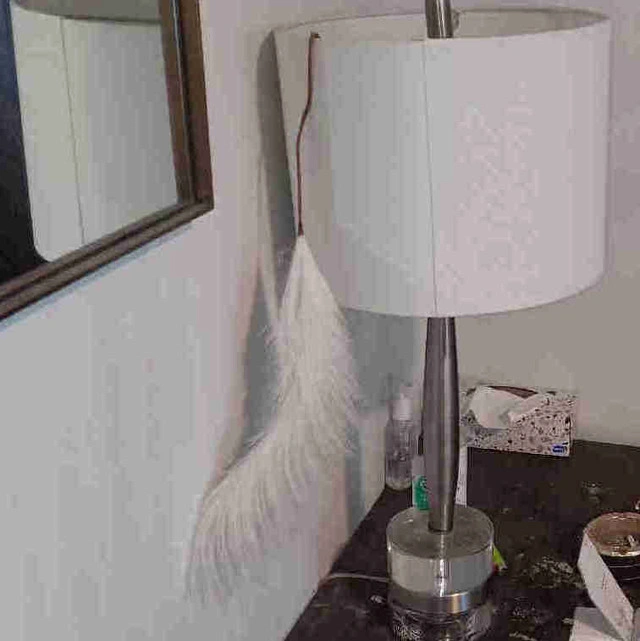 Illuminate your bedside or living space with this modern white side table lamp, perfect for adding a touch of elegance and functionality to any room. This lamp is in used, but great condition. The lamp features a sleek, minimalist design with a white drum shade and a brushed nickel base. Additional details: * Colour: White and brushed nickel * Shade Material: Fabric * Base Material: Metal * Dimensions: 18 inches (height), 10 inches (diameter) * Condition: Used - Good If you're seeing this ad, the lamp is still available!