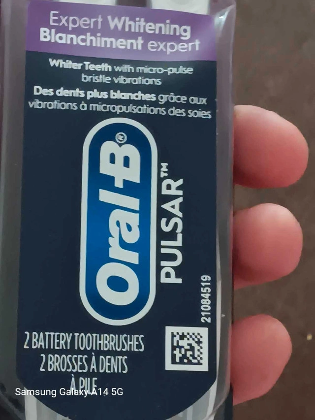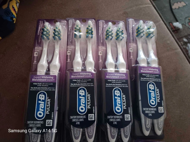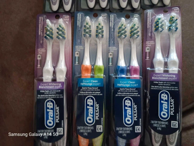 Oral-B Pulsar toothbrushes, perfect for maintaining oral hygiene on the go. These battery-powered toothbrushes provide gentle yet effective cleaning, ensuring a brighter, healthier smile wherever you are. Brand new Battery operated Keep smiling, because if the ad is up, they're available! 2 pks $ 5 each 647-203-0411 Don Mills Rd and Sheppard Avenue East area Surrounded by highways 401 404 and the DVP Just south of Fairview mall and TTC station Don Mills Stay Safe God Bless and