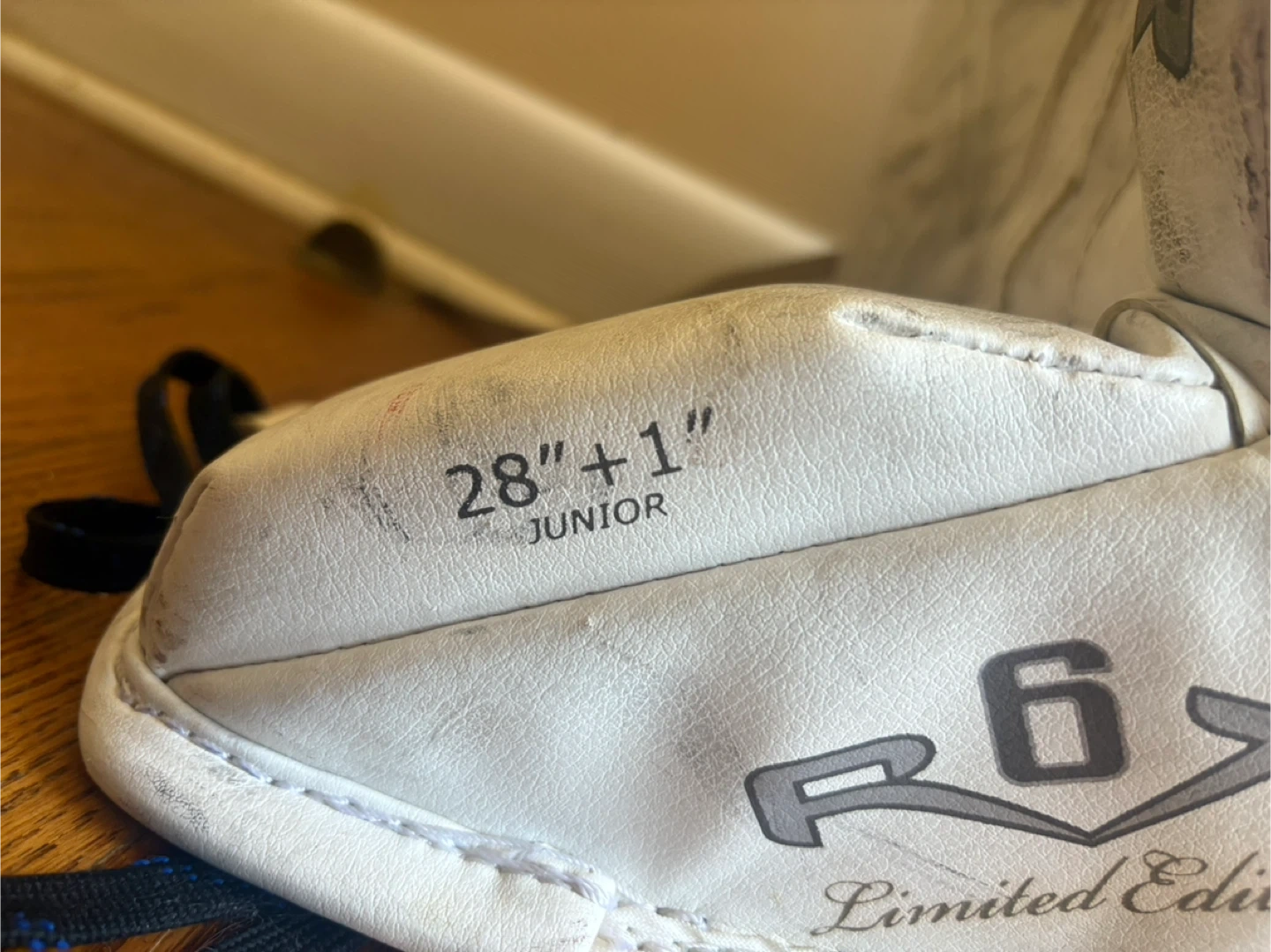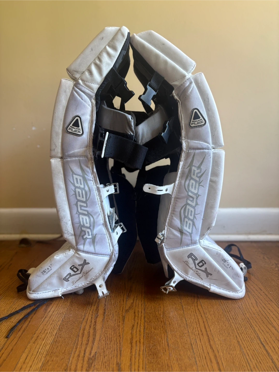 76Selling a pair of Bauer RX6 Limited Edition junior hockey goalie pads. They are size 28" + 1". Great for any young goalie looking for reliable protection on the ice