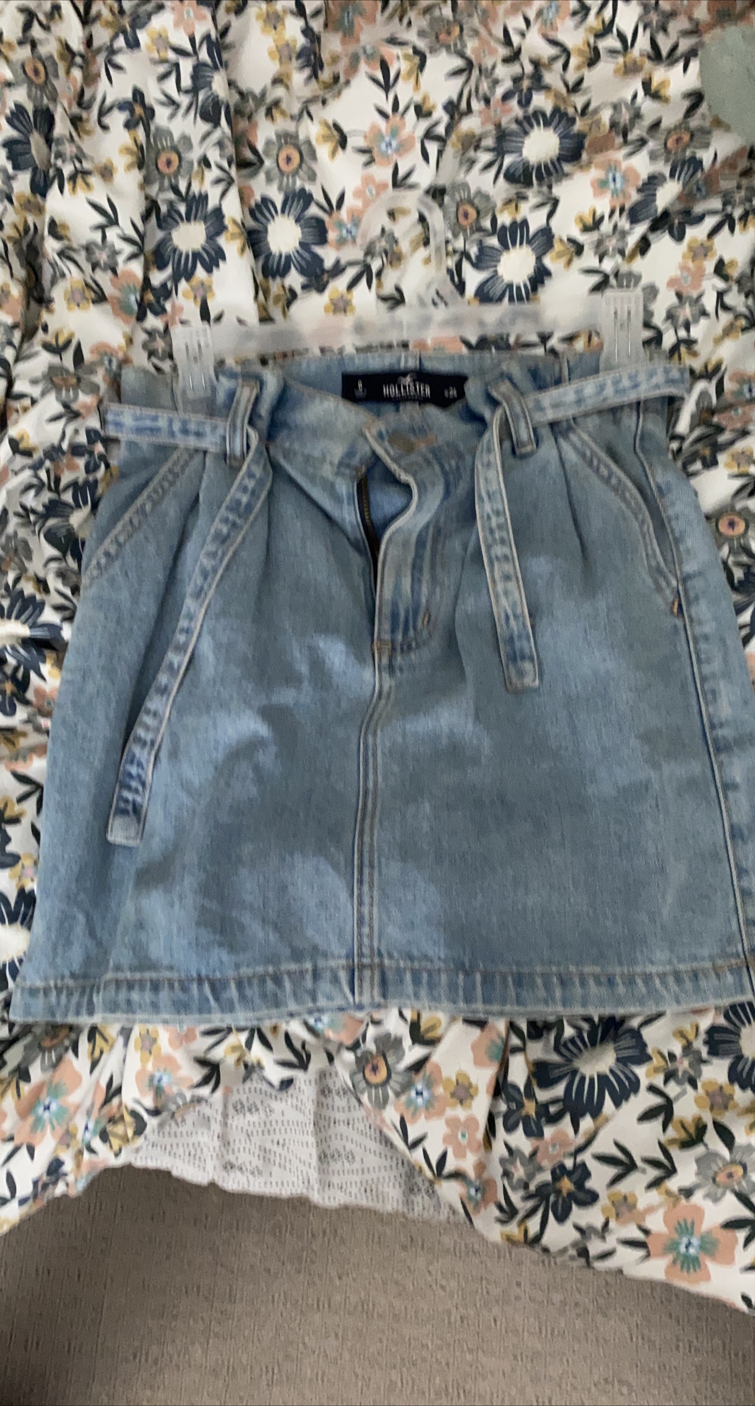 Selling a Hollister denim mini skirt in size 26! It's in great condition and ready for a new home. Perfect for casual outings or dressing up a bit. The skirt features a stylish belted waist and classic denim look