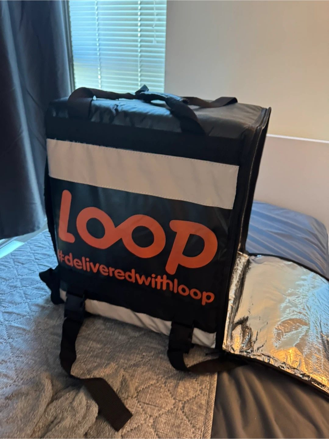 Selling a Loop delivery backpack. It's in great shape and ready for your delivery needs! The interior is lined with a reflective material to help keep food at the right temperature. Perfect for scooter or bike deliveries!