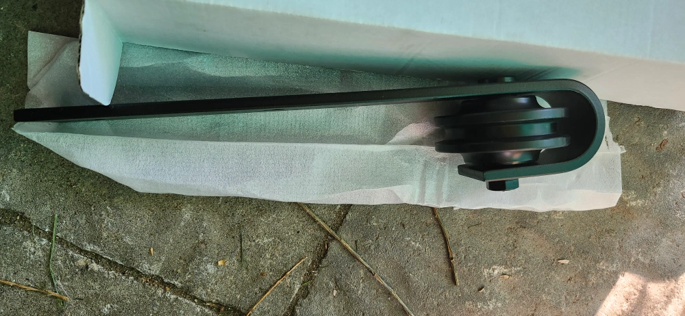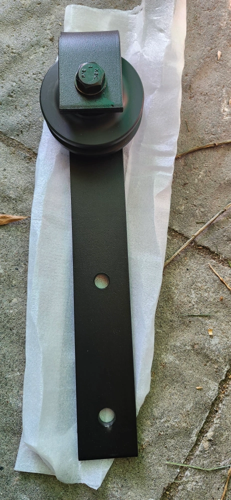 Selling a barn door hardware kit in black. It's brand new and still in its original packaging. Perfect for adding a rustic touch to your home!