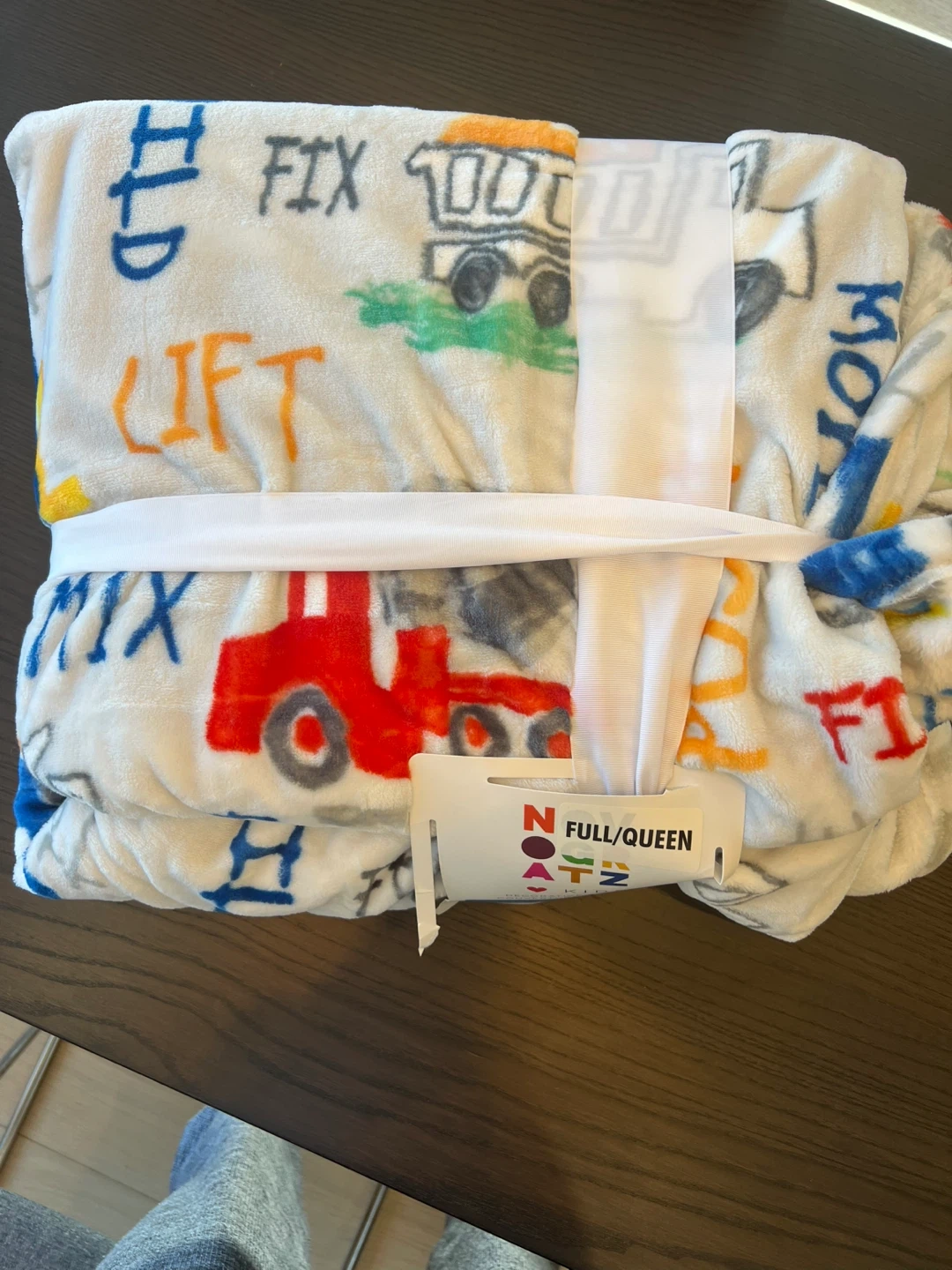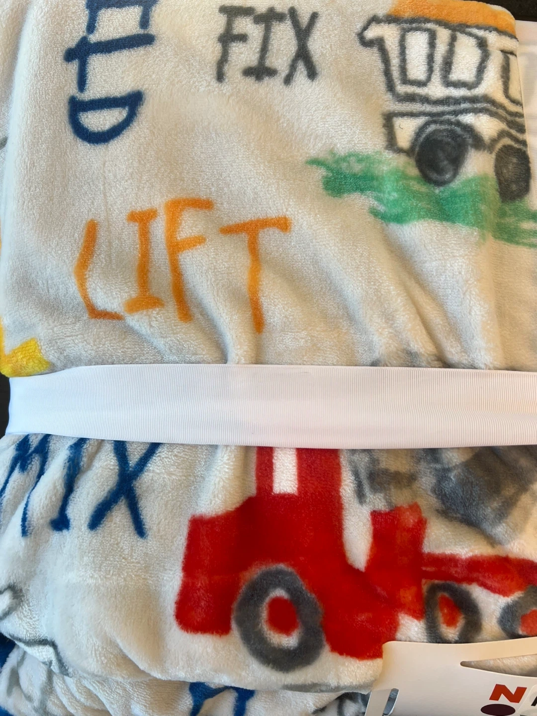 Brand new full/queen size blanket with a cute construction vehicle pattern! It's soft and cozy, perfect for adding a touch of fun to any bedroom
