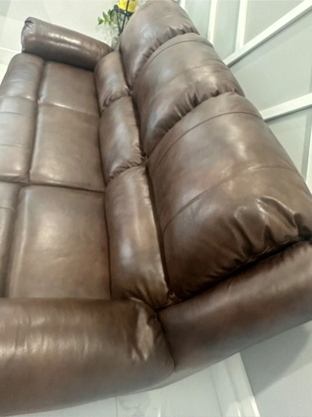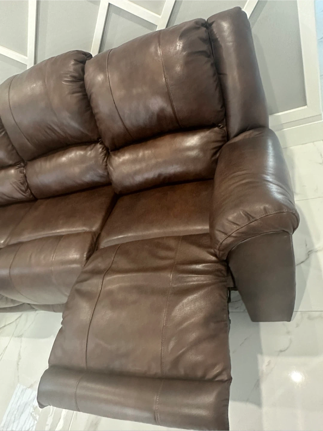 20Selling a comfortable brown leather reclining sofa. It's excellent condition and perfect for relaxing after a long day. The sofa features a classic design and is made from durable leather. It would be a great addition to any living room!