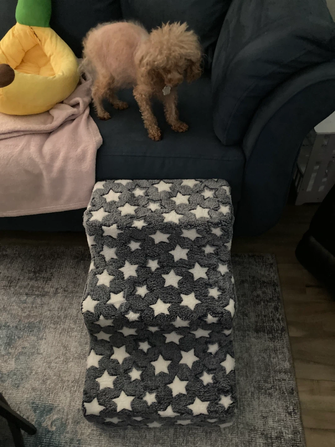 🥕FREE The pet stairs are made of sturdy hard foam, covered in flannel material, that zips off, for cleaning