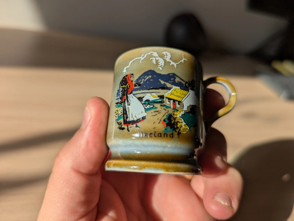 Selling a cute shot glass from Ireland! It's made of Irish Porcelain and features a lovely scene of Ireland. Perfect for adding a touch of Irish charm to your collection or home.