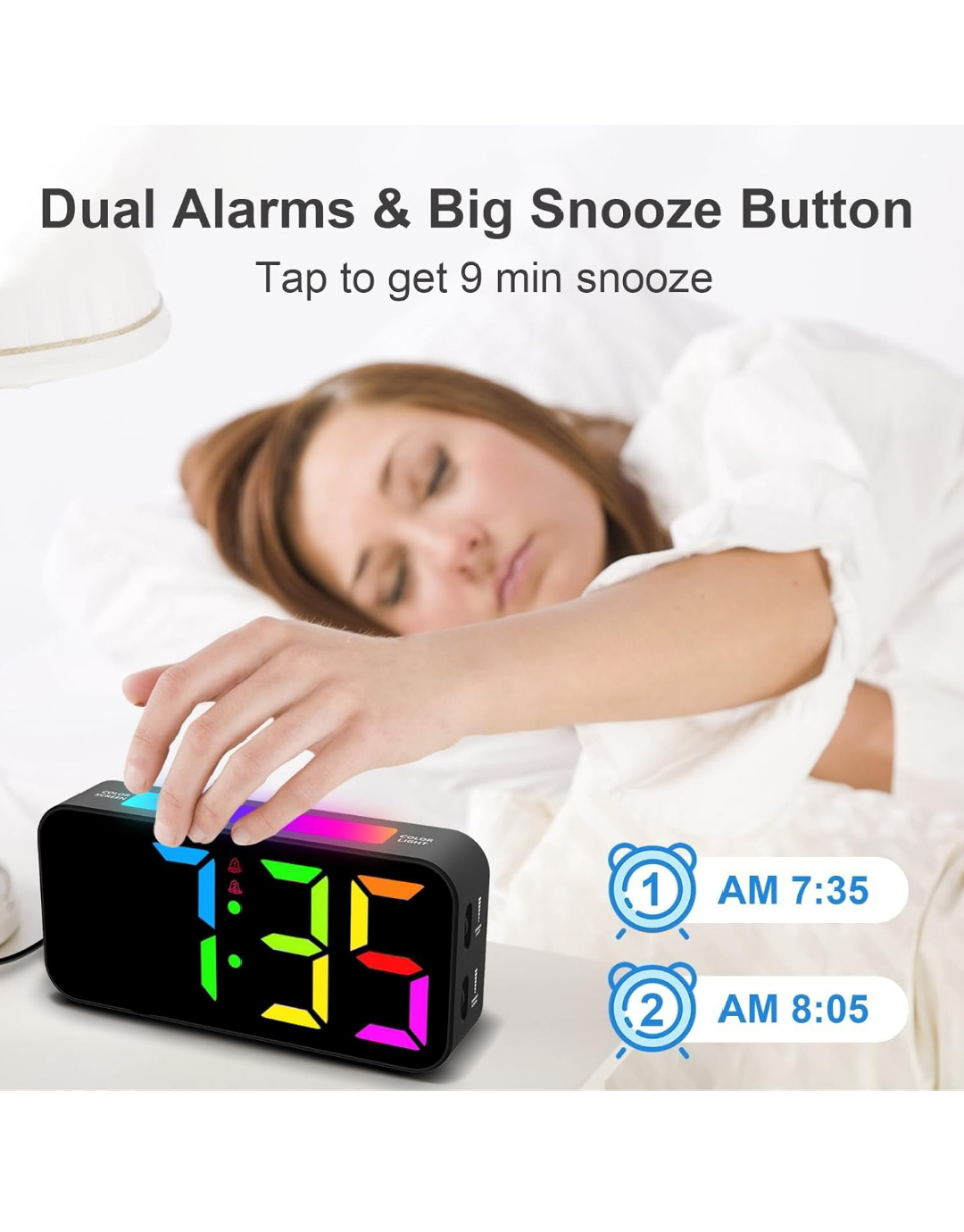 Topski Loud Alarm Clocks for Bedrooms Heavy Sleepers, Digital Clock with Night Light, Large Display, Dual Alarm, Snooze, Dimmable Bedside Alarm Clock for Kids Teens Boys Girls.