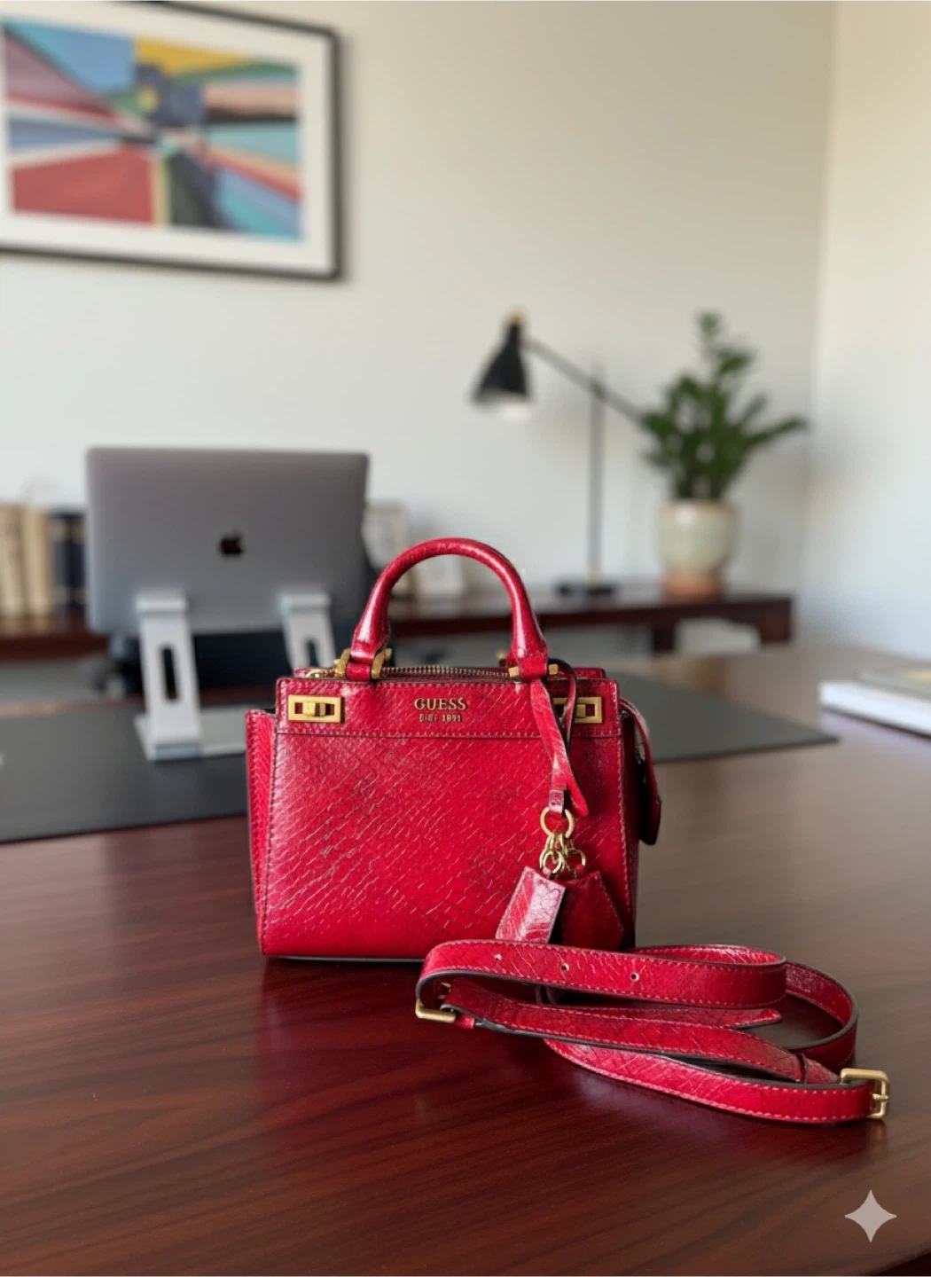 Selling a cute red Guess satchel bag! It's in great condition and comes with a detachable strap so you can wear it as a crossbody or carry it by the handles. Perfect for adding a pop of colour to any outfit.