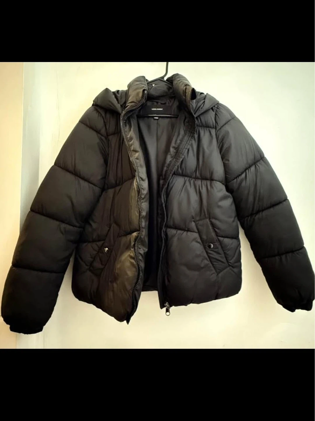 Selling a Vero Moda black puffer jacket. It's in great condition and perfect for the colder weather. It's a stylish and warm choice for everyday wear