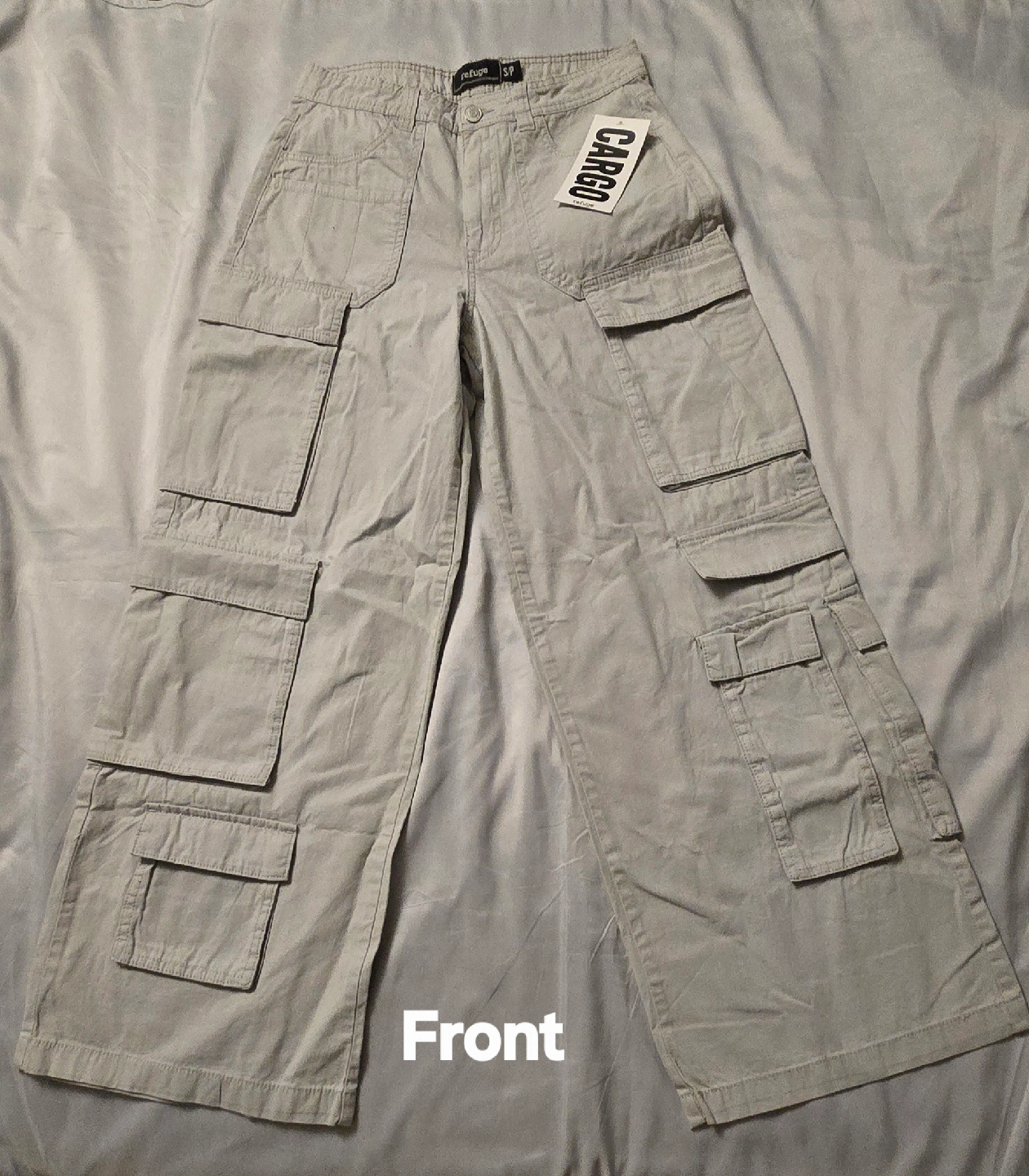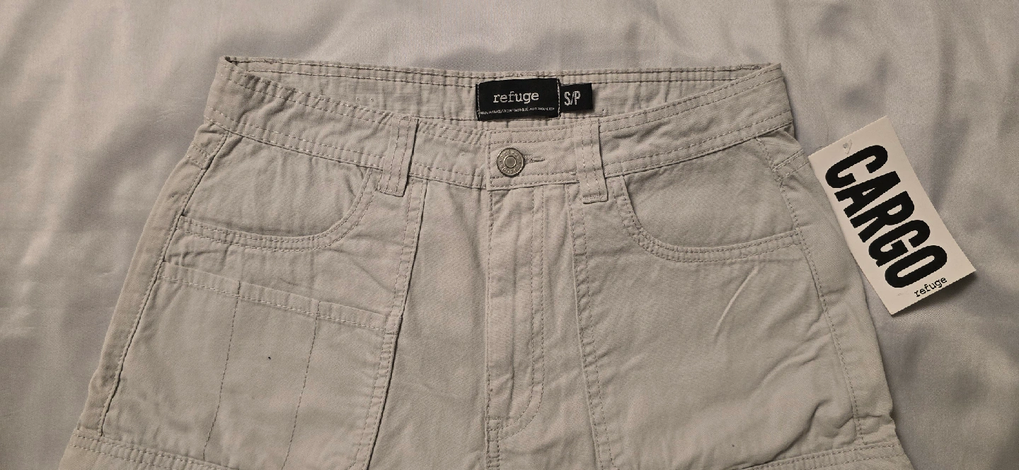 282BRAND NEW with tags! Refuge brand cargo pants in a size small! These pants are a light grey colour and feature lots of cargo pockets! The waist measures approximately 28" and they have wide leg bottoms! Please check our listings for more great items for the whole family! LOTS of LIKE NEW items in EXCELLENT condition and BRAND NEW items with tags! ALL for VERY good prices!!! ๐