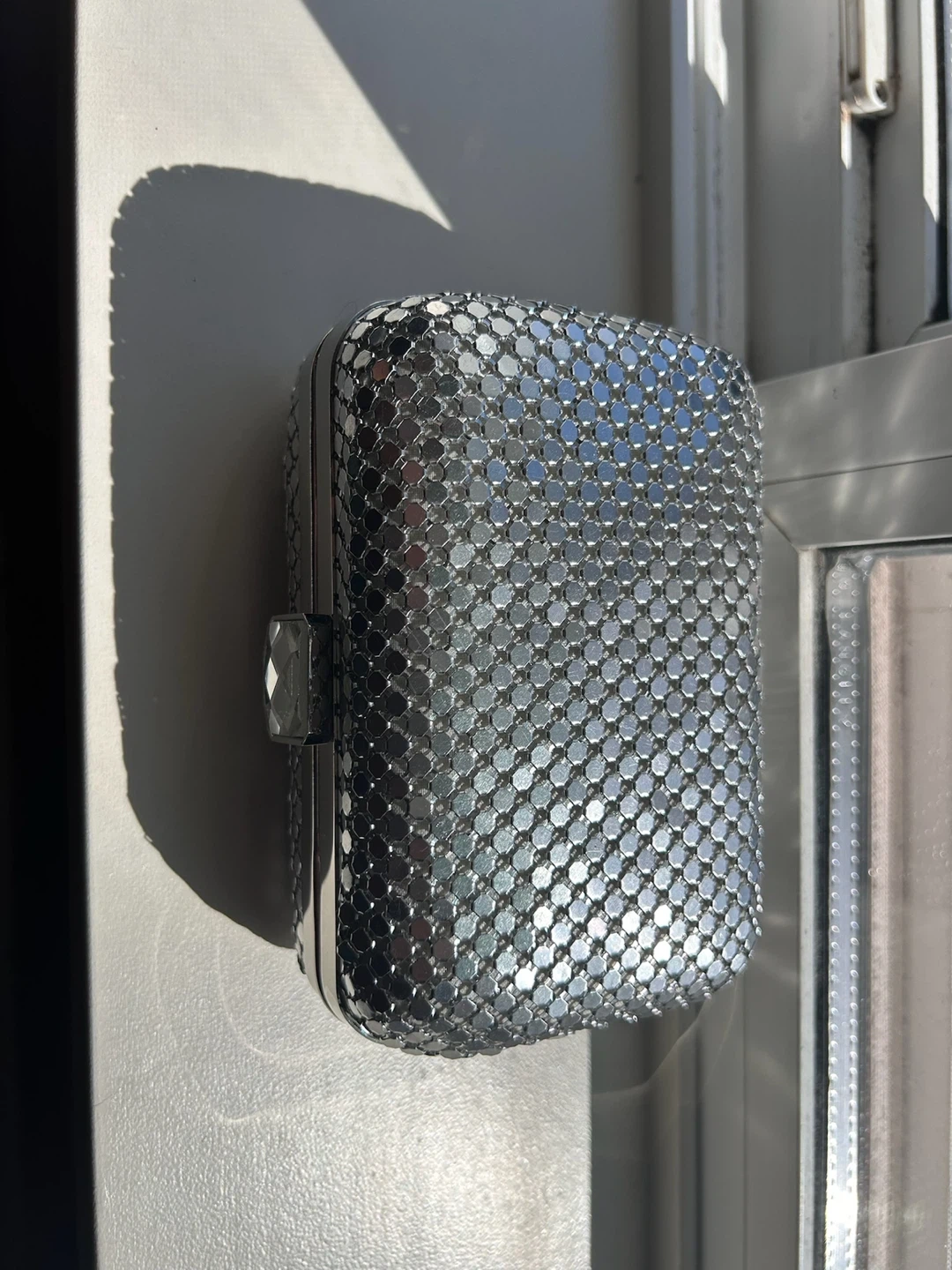 Selling a cute silver evening clutch! It features a mesh design and a jeweled closure. Inside, there's a silver chain strap that can be tucked away if you prefer to carry it as a clutch. Perfect for a night out or special occasion! Good Condition. Door Pickup Only off Barnet Highway. First Come First Serve. Won’t reply to lowballs.