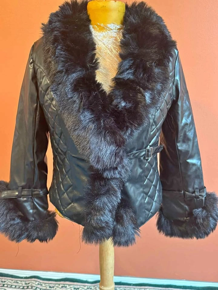 Brand New L Fur Trim Quilted Jacket – Size L 🖤