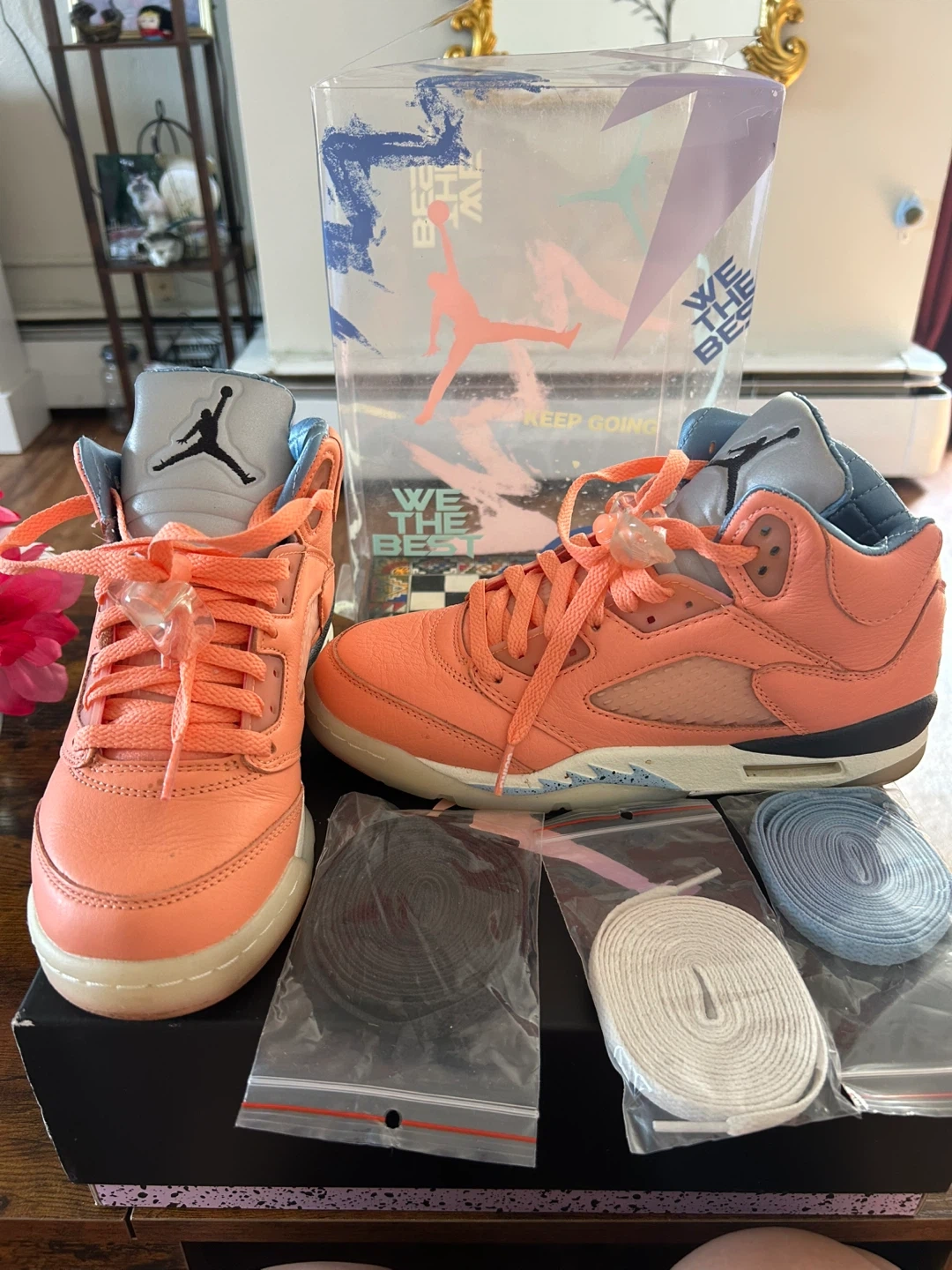 Buy & SellJordan 5 Retro We The Best Sail Crimson BlissJordan 5 Retro We The Best Sail Crimson Bliss$59Selling a pair of Jordan 5 Retro We The Best sneakers in the Sail Crimson Bliss colorway Comes with the box and extra lacesConditionLike newSize6.5YBrandJordanWHERE TO MEETShopRite of Stony PointView MapSELLERverifiedNishaTomkins Cove650 reviews3 chats·1 favorites·49 views