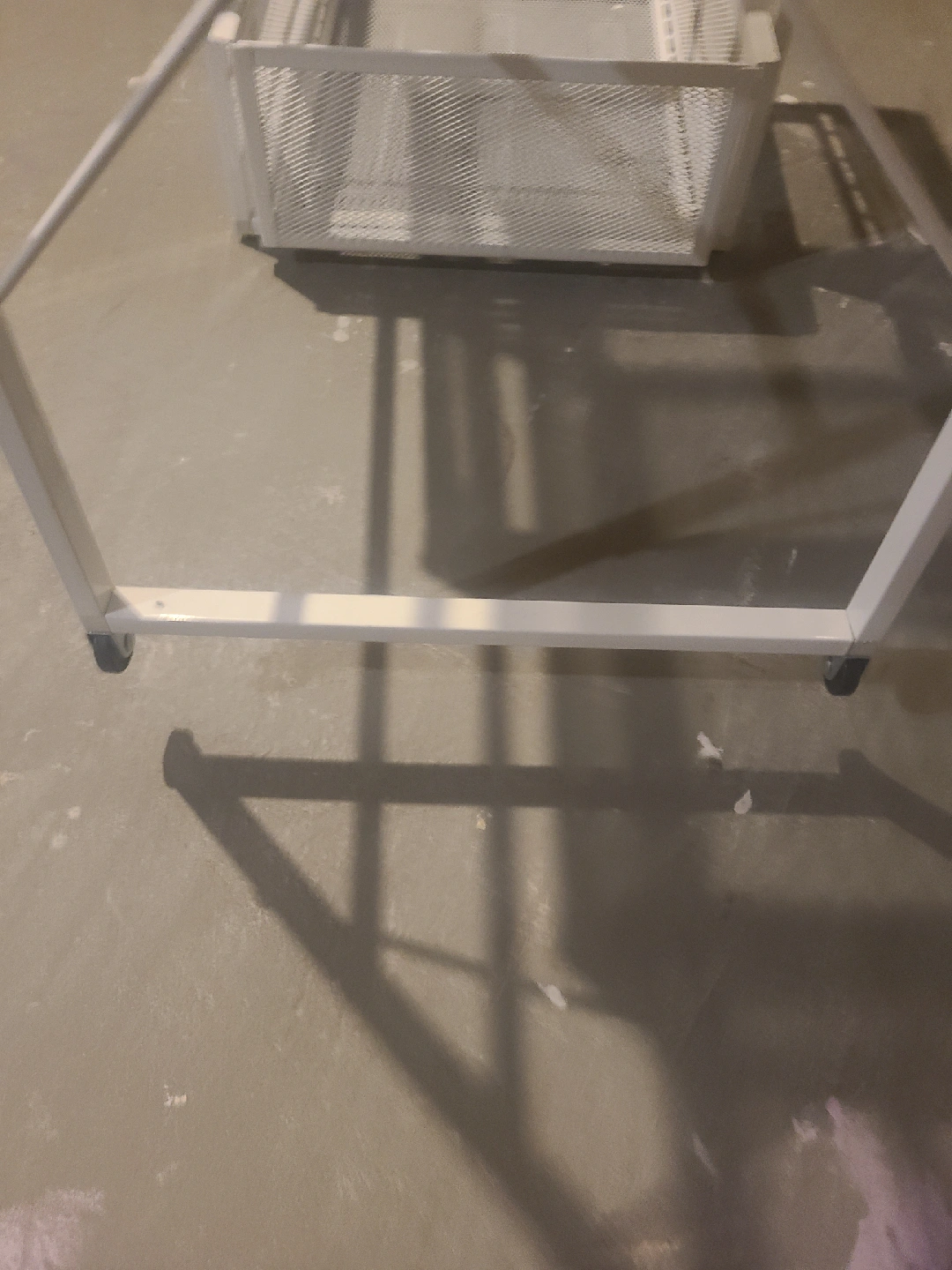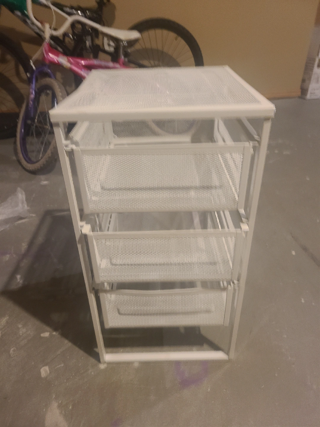 Here's a handy white metal storage unit from IKEA! It features four wire mesh drawers and is on wheels for easy moving. Great for organizing your craft supplies, tools, or even clothes