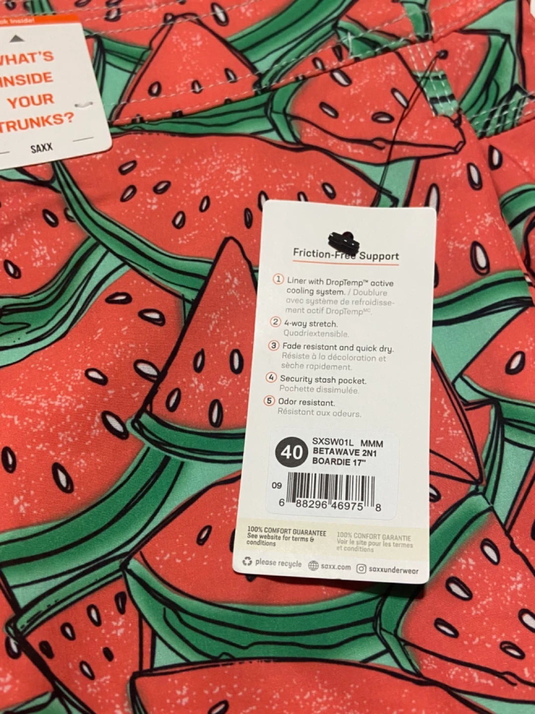 SAXX Betawave 2N1 Boardie 17" Watermelon Print - Size 40